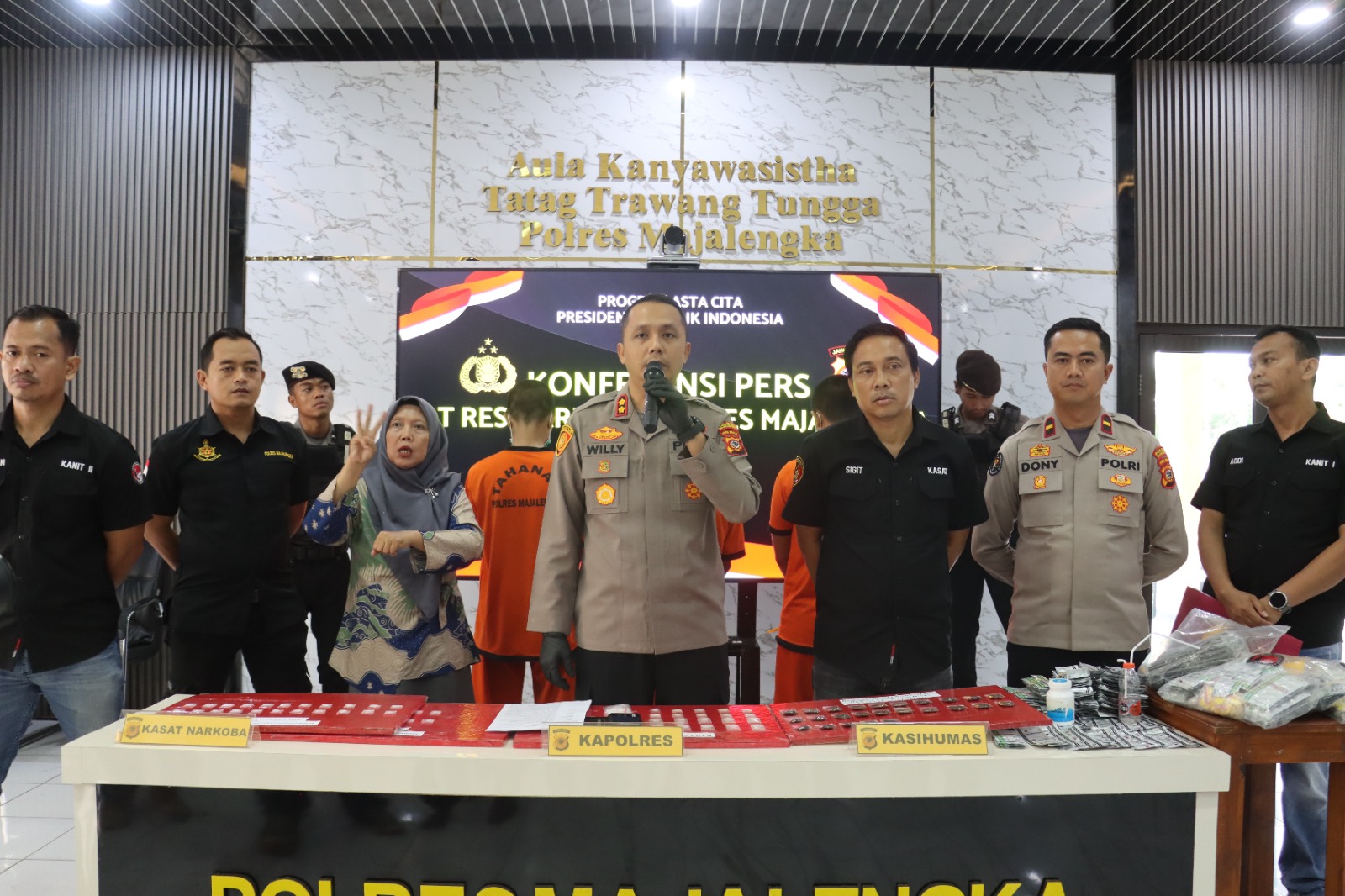 Kapolres Majalengka, AKBP Willy Andrian didampingi Kasat Narkoba, AKP Sigit Purnomo dan Kasihumas Polres Majalengka Ipda Dony Arivanto mengatakan, kasus yang berhasil ditangani meliputi tindak pidana narkotika jenis sabu, tembakau sintetis, psikotropika, hingga peredaran obat keras tanpa izin edar.