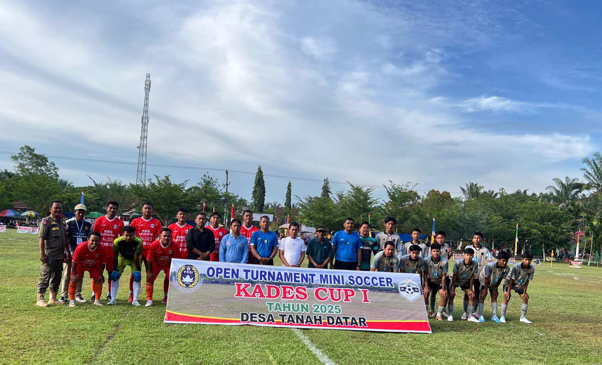 Camat Tapung Hulu, Nuryadi, SE, secara resmi membuka Open Turnamen Mini Soccer Kades Cup I Tahun 2025 yang digelar di Lapangan Sepak Bola Desa Tanah Datar, Kecamatan Tapung Hulu, Kabupaten Kampar, Riau. (25/10/25).