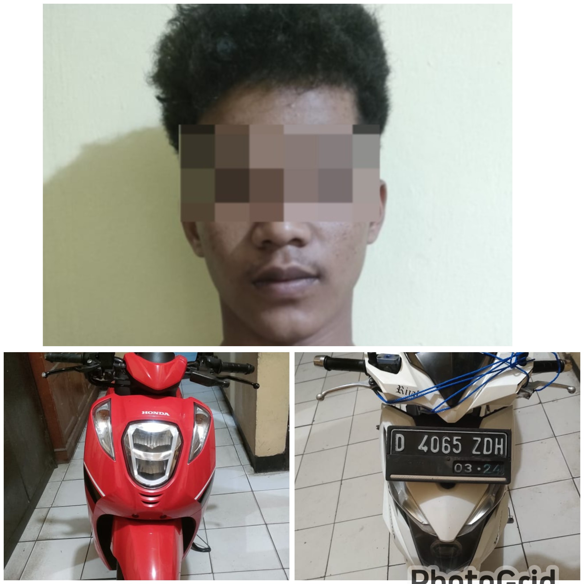 Korban, seorang perempuan berinisial K.K. (60), pensiunan guru, awalnya hendak membuka pintu rumah dan mendapati gerbang yang biasanya di gembok sudah dalam keadaan terbuka. Ia kemudian terkejut saat mengetahui sepeda motor Honda Genio nopol Z-4269-DAR tahun 2020 miliknya yang terparkir di halaman rumah telah raib.