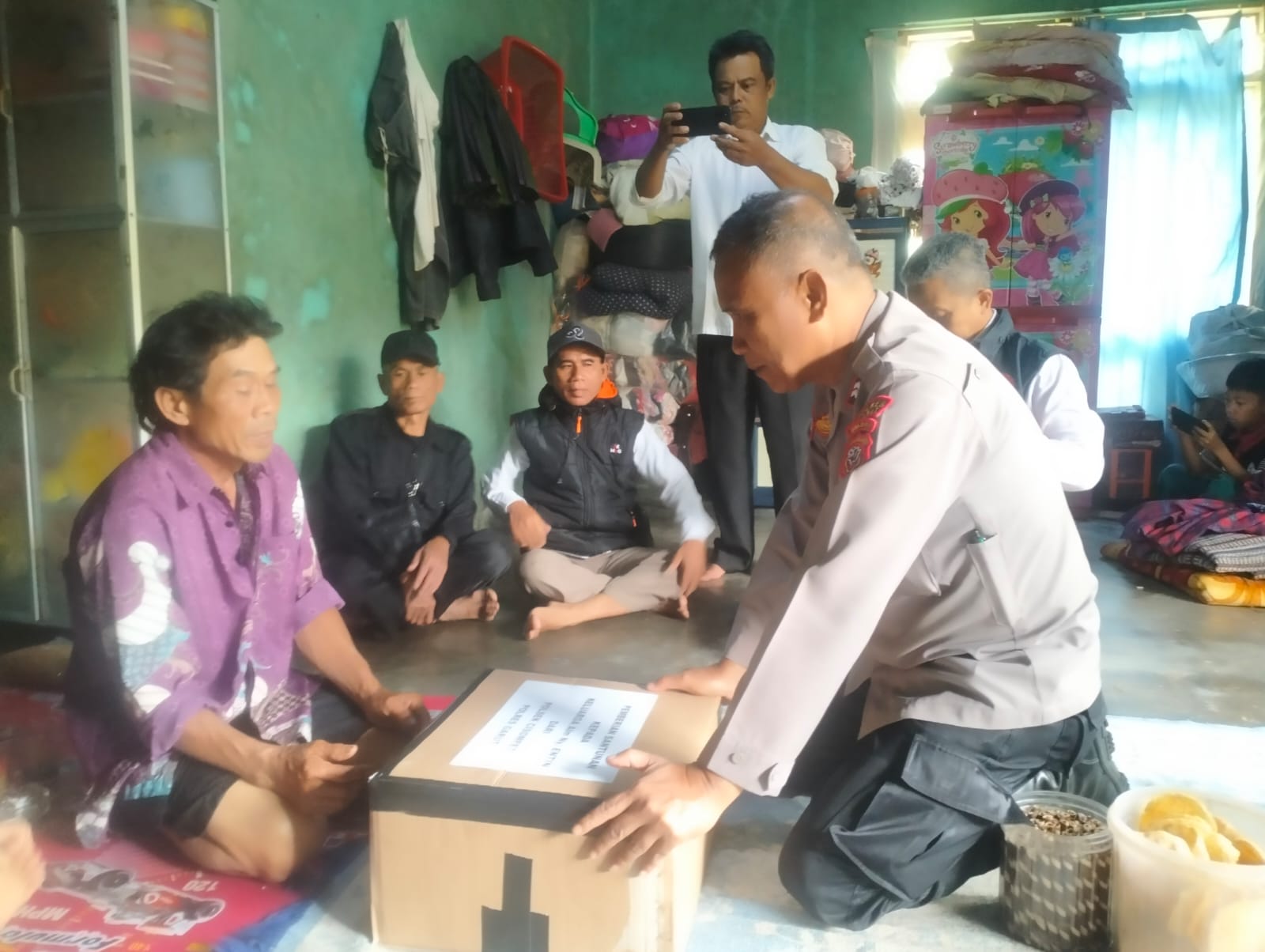 Polsek Cisompet Salurkan Bantuan kepada Keluarga Korban Tersengat Listrik di Desa Cikondang