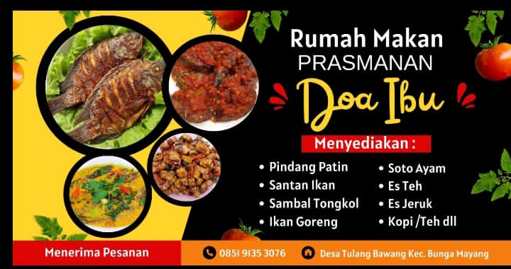 OKU Timur — Bagi masyarakat yang ingin menikmati cita rasa masakan rumahan dengan suasana nyaman, kini tak perlu bingung lagi. Di Desa Tulang Bawang, tepatnya di kawasan bedeng, telah hadir Rumah Makan Prasmanan Doa Ibu, yang menjadi salah satu tempat makan favorit warga sekitar.