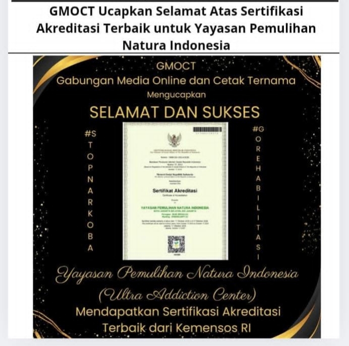 Kabupaten Semarang (GMOCT) Kamis 6 Oktober 2025 – Gabungan Media Online dan Cetak Ternama (GMOCT), sebagai mitra publikasi dan edukasi dari Yayasan Pemulihan Natura Indonesia Ultra Addiction Center, mengucapkan selamat atas diraihnya Sertifikasi Akreditasi Terbaik dari Kementerian Sosial Republik Indonesia (Kemensos RI) kepada yayasan tersebut.