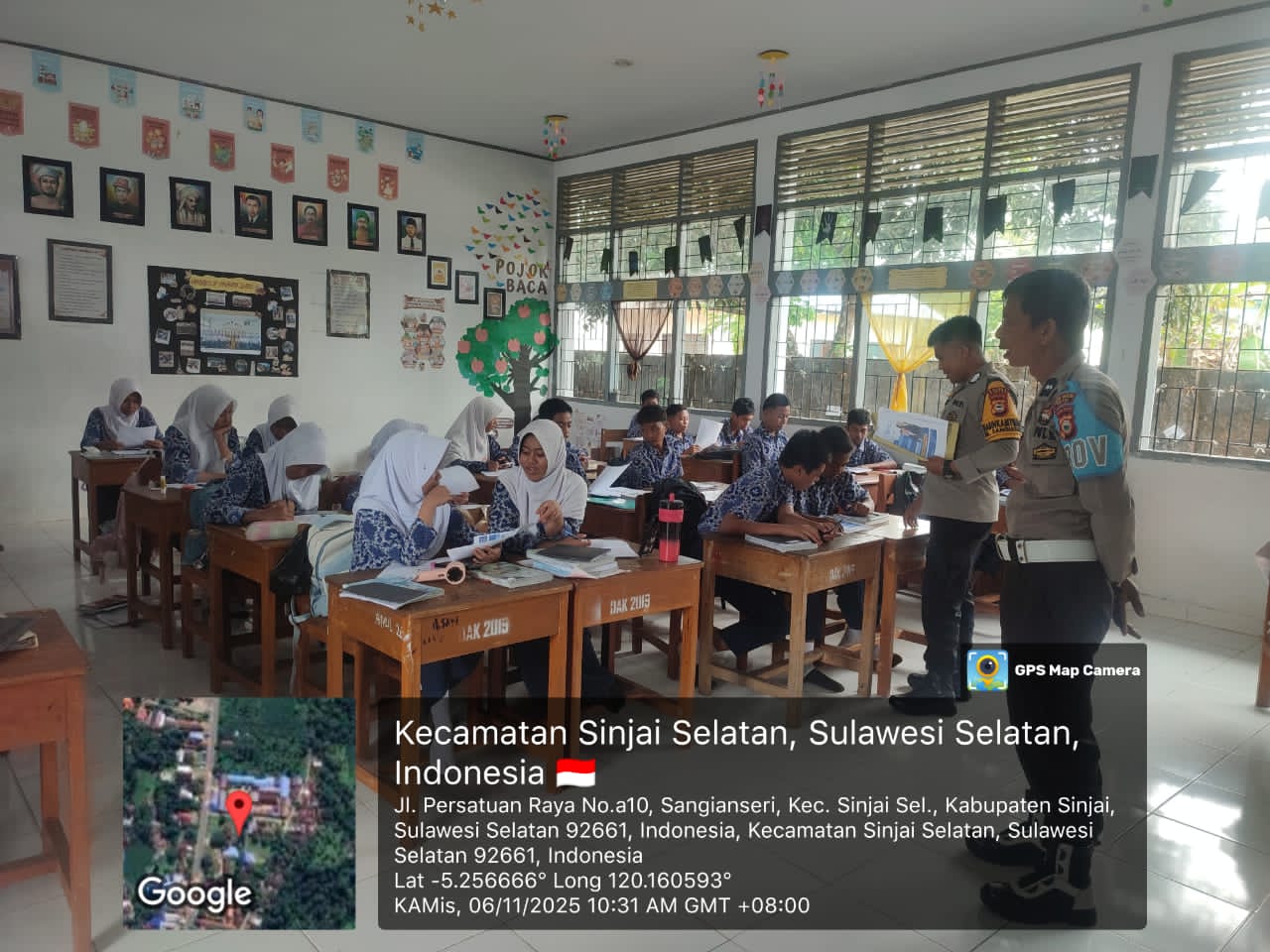 Seperti kali ini, personil Polsek Sinjai Selatan Aipda Syafaruddin bersama Brigpol Nasrullah melaksanakan sosialisasi di SMP Negeri 2 Sinjai, Kecamatan Sinjai Selai, Kabupaten Sinjai. (6/11/2025).
