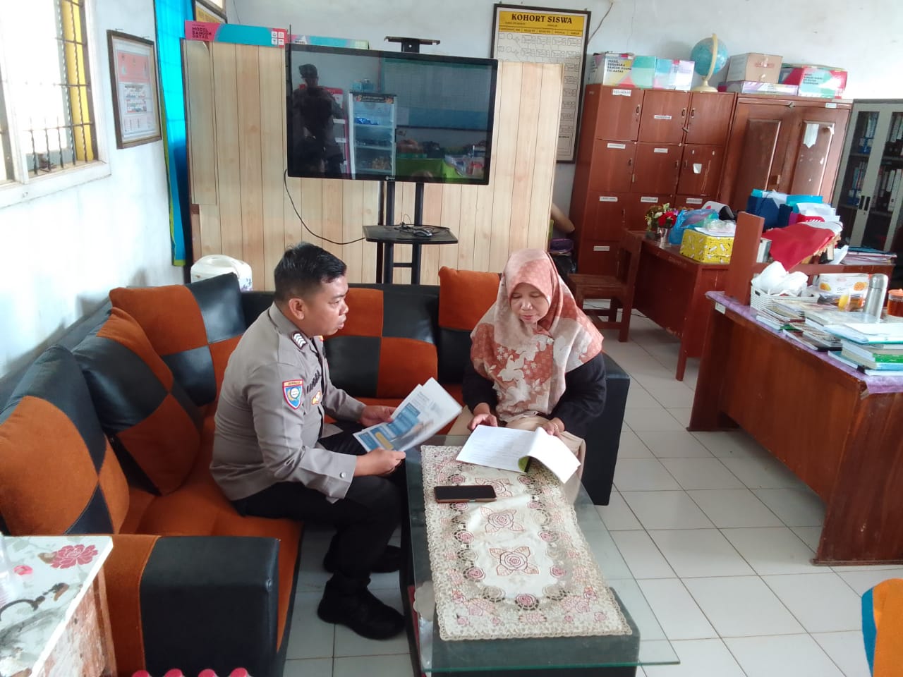 Selain menyampaikan informasi umum mengenai mekanisme pendaftaran, Bripka Indra dan Briptu Yopi Irwanto juga melakukan koordinasi dengan pihak sekolah, khususnya Waka Kesiswaan, untuk mendata siswa-siswi berprestasi yang berpotensi mengikuti seleksi penerimaan siswa baru di sekolah tersebut.