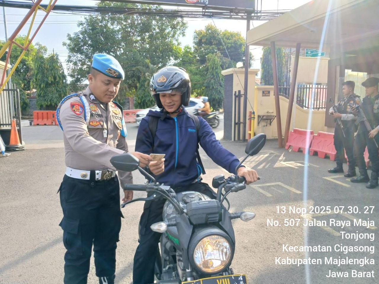Kegiatan tersebut dipimpin langsung oleh Kasi Propam Polres Majalengka, Iptu Yudhi Simanjuntak, bersama anggota Propam dan dilaksanakan di pintu masuk Mapolres Majalengka pada Rabu (12/11/2025).