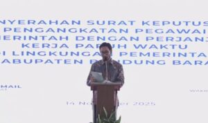 Bupati Bandung Barat Jeje Ritchie Ismail dalam pidato menegaskan dengan harapan penuh semangat. “Hari ini, kita tidak sekadar berkumpul. Kita hadir dengan semangat besar, dengan tekad yang kuat, untuk memberikan secara resmi Surat Keputusan (SK) Pengangkatan PPPK Paruh Waktu di lingkungan Pemerintah Kabupaten Bandung Barat,” harapnya.