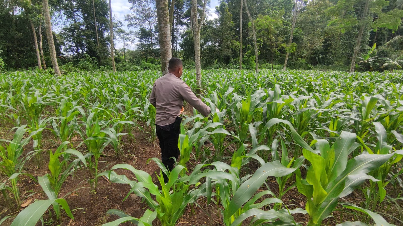 Kehadiran Aipda Pedi Fedillah di area pertanian disambut hangat oleh para petani yang tengah melakukan perawatan jagung. Dalam kegiatan tersebut, ia turut memanggul pupuk, membantu proses pemupukan, serta memberikan motivasi kepada petani agar terus meningkatkan kualitas dan hasil produksi pertanian.