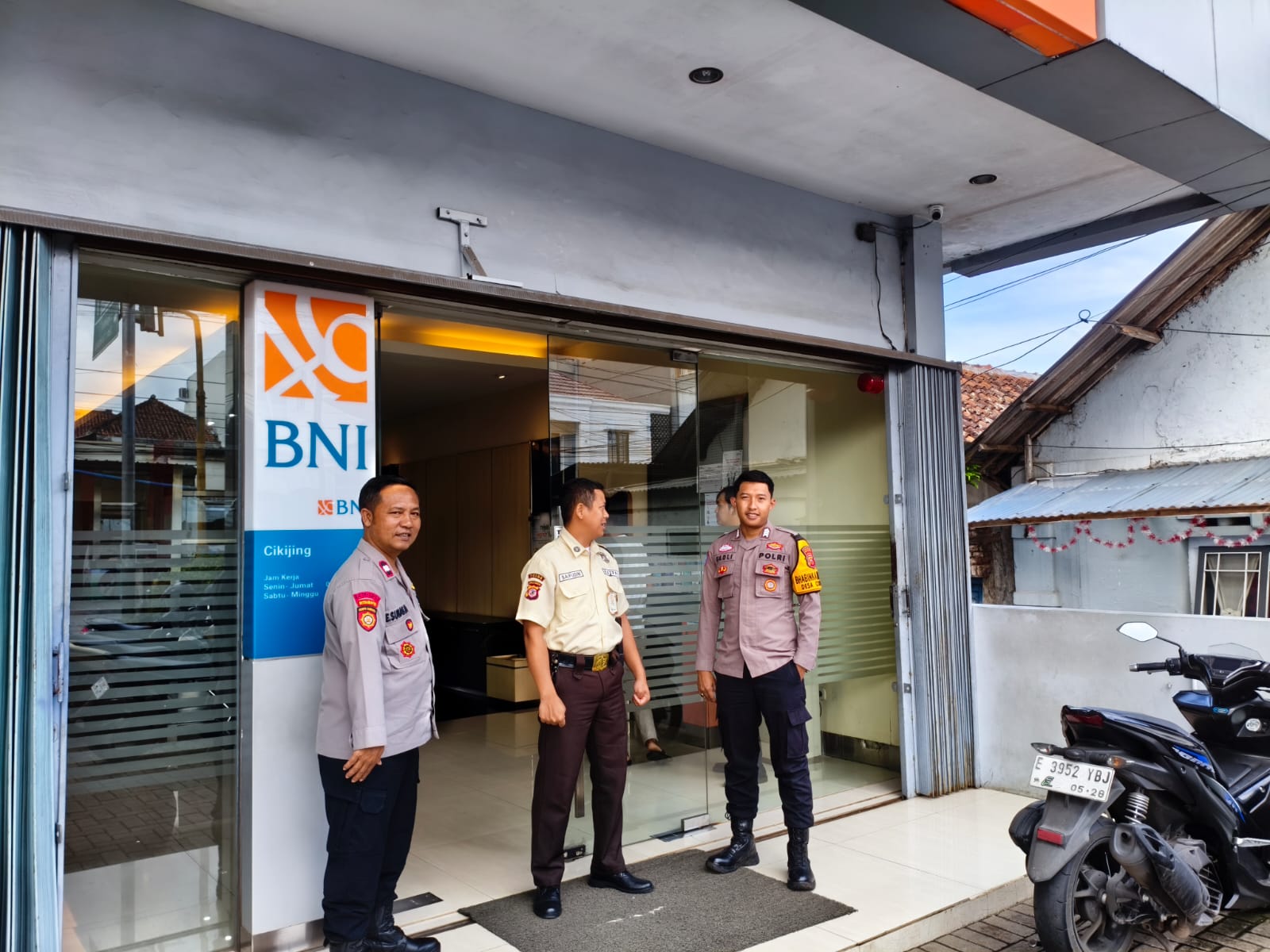 Majalengka – Untuk memberikan Pengamanan pada objek vital yang ada di wilayah hukum Polsek Cikijing, Ps. Panit Samapta l Polsek Cikijing Polres Majalengka Polda Jabar, Aiptu Eman Subagja bersama Bhabinkamtibmas Brigadir M. Fadli, S.H. melaksanakan Patroli ke Bank BNI KLN Cikijing, Jum’at (21/11/2025).