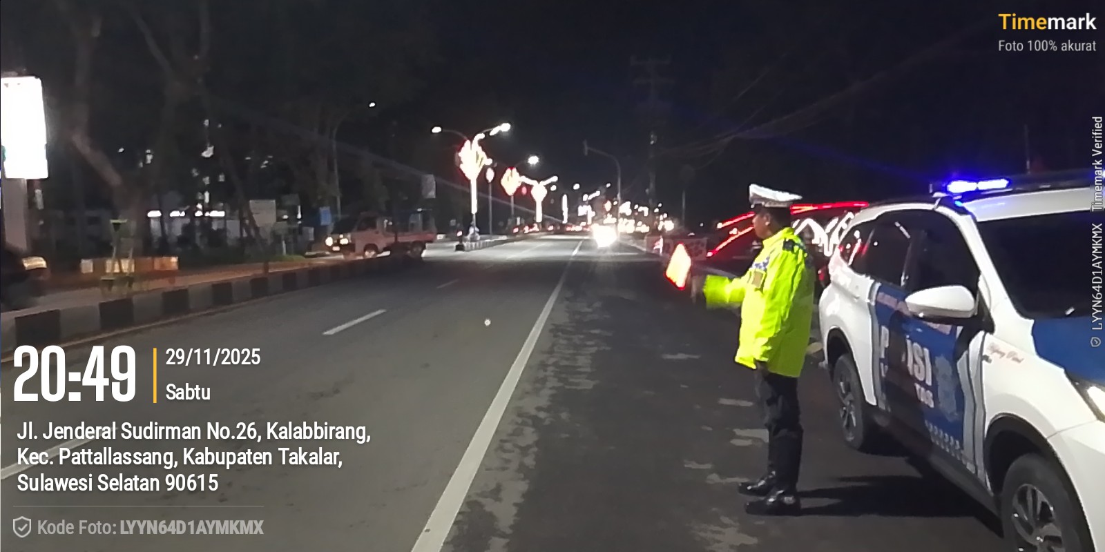 Takalar — Personel Piket Turjawali Sat Lantas Polres Takalar kembali melaksanakan Blue Light Patrol pada Sabtu malam, 29 November 2025, mulai pukul 20.00 Wita hingga selesai. Kegiatan patroli yang dimulai pukul 22.00 Wita ini berlangsung dalam wilayah hukum Polres Takalar dengan tujuan memastikan keamanan, ketertiban, dan kelancaran arus lalu lintas pada malam akhir pekan.