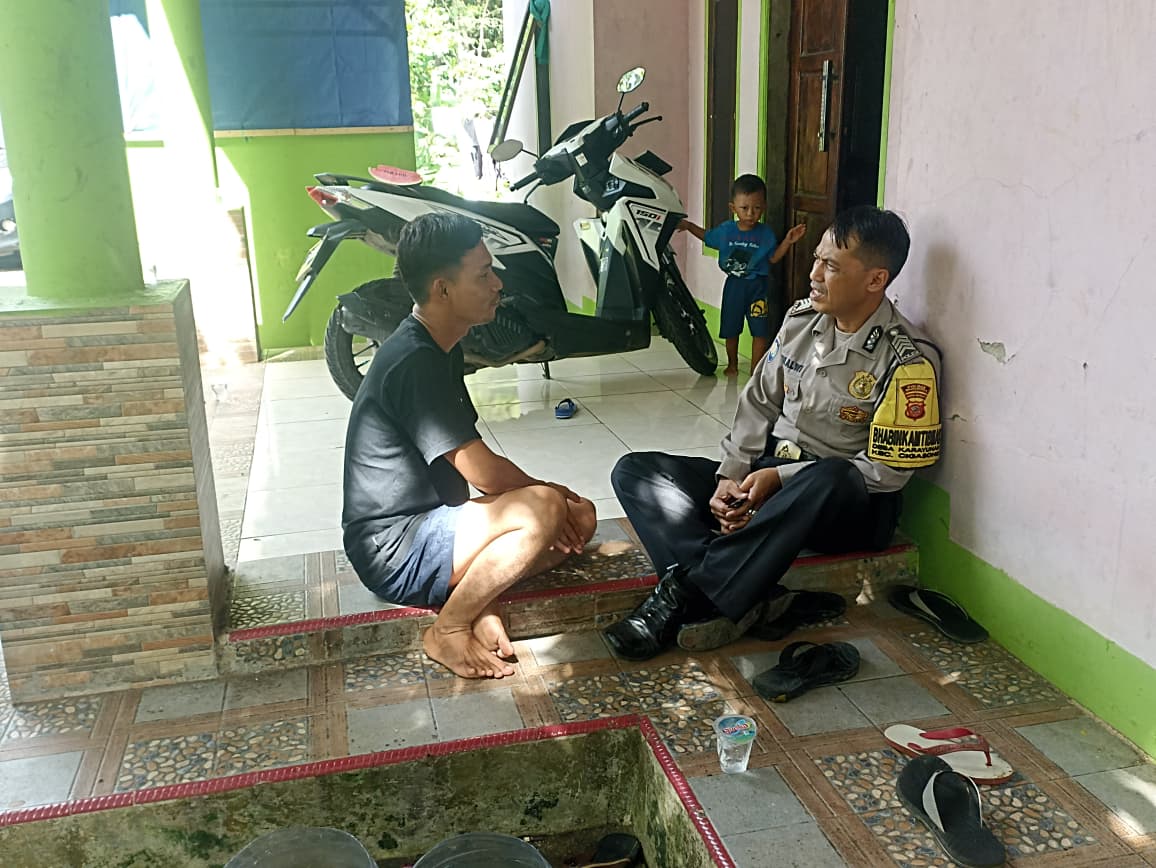 Kegiatan tersebut dilakukan dengan menyambangi sejumlah warga, perangkat desa, serta tokoh masyarakat guna memperkuat komunikasi dan kerja sama dalam menjaga keamanan lingkungan. Bripka Andi menyampaikan imbauan agar masyarakat tetap waspada terhadap gangguan keamanan, termasuk tindak kriminalitas, serta turut berperan aktif dalam menjaga ketertiban di lingkungan masing-masing.