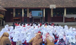 Suasana belajar berlangsung hangat dan penuh antusiasme, terlihat dari semangat anak-anak saat bertanya dan berinteraksi dengan petugas.