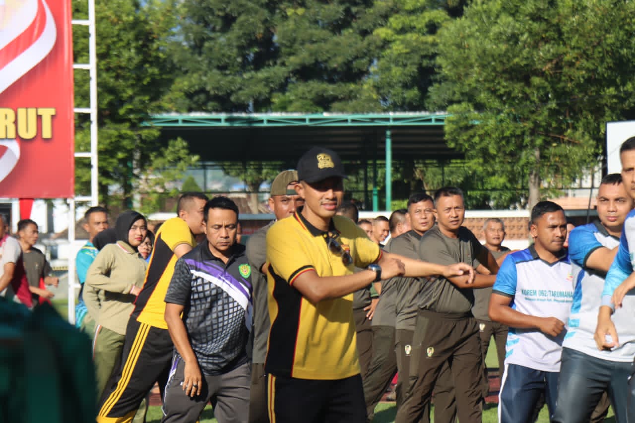 Perkuat Sinergitas TNI-Polri, Polres Garut Olahraga Bersama Korem 062/Tn