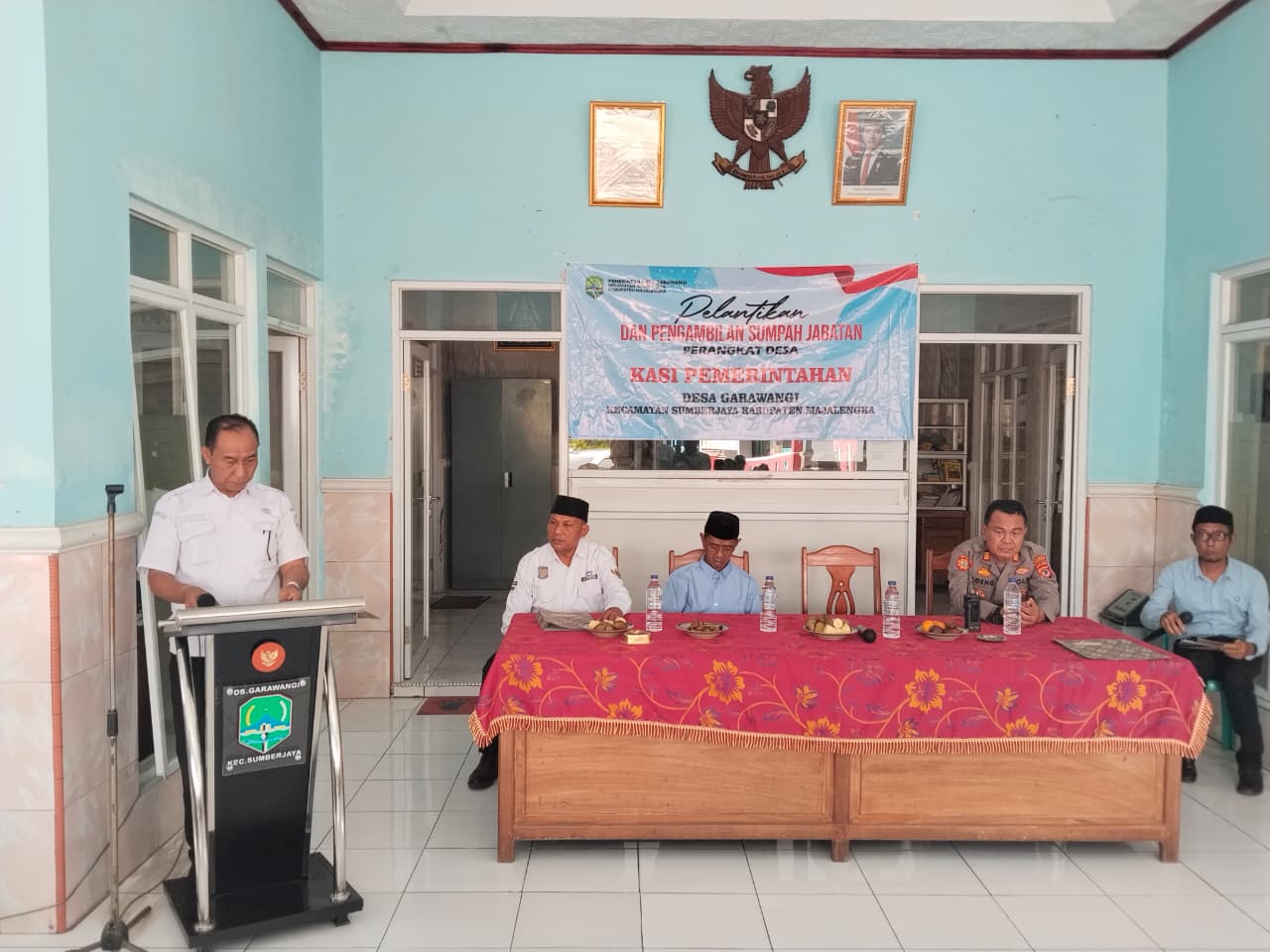 Kegiatan berlangsung tertib dan khidmat, disaksikan oleh unsur pemerintahan kecamatan, tokoh masyarakat, serta jajaran Polsek Sumberjaya. Dengan dilantiknya perangkat desa yang baru, diharapkan pelayanan pemerintahan di Desa Garawangi dapat semakin optimal dan memberikan manfaat bagi masyarakat.