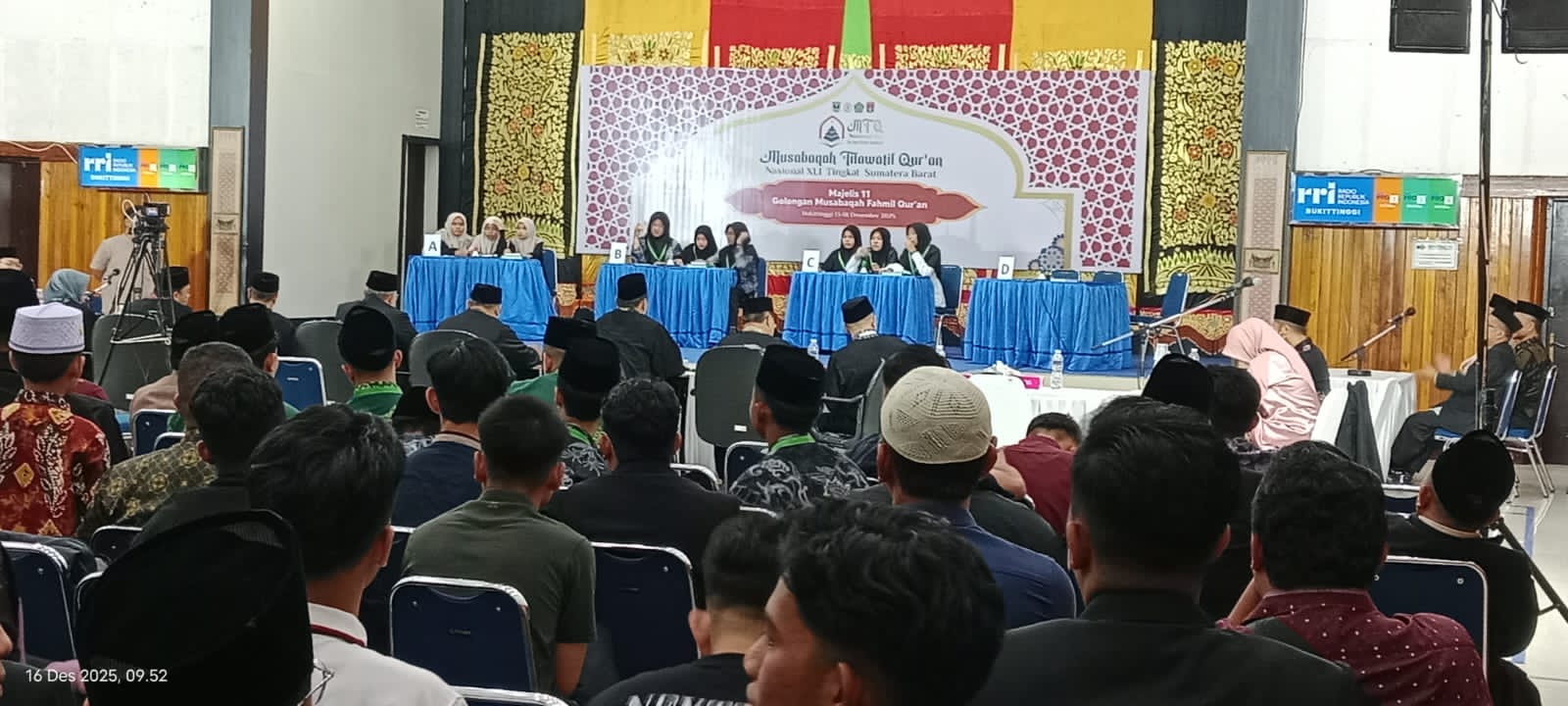 Bukittinggi, Reformasiaktual.com – Babak Semi Final Musabaqah Fahmil Qur’an (MFQ) pada Musabaqah Tilawatil Qur’an (MTQ) Nasional ke-41 Tingkat Provinsi Sumatera Barat digelar di Auditorium Loetan Soetan Toenaro, RRI Bukittinggi, Selasa (16/12/2025).