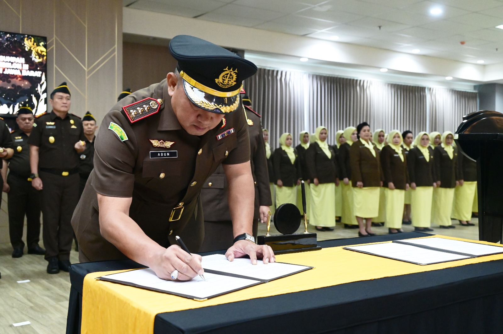 Reformasiaktual.com//Bertempat di Aula R.Soeprapto Kejaksaan Tinggi Jawa Barat, Kepala Kejaksaan Tinggi Jawa Barat Dr. Hermon Dekristo, S.H., M.H. melantik Kepala Kejaksaan Negeri Kota Bandung Abun Hasbulloh Syambas, S.H., M.H. dan Kepala Kejaksaan Negeri Kota Sukabumi Siti Holijah Harahap, S.H., M.H. (17/12/25).