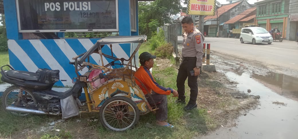 Patroli Dialogis dalam upaya menjaga situasi lingkungan Jatiwangi yang aman dan kondusif kepada warga masyarakat dan tukang becak diprapatan Lampu merah Kecamatan Jatiwangi Kabupaten Majalengka, Rabu (17/12/2025).