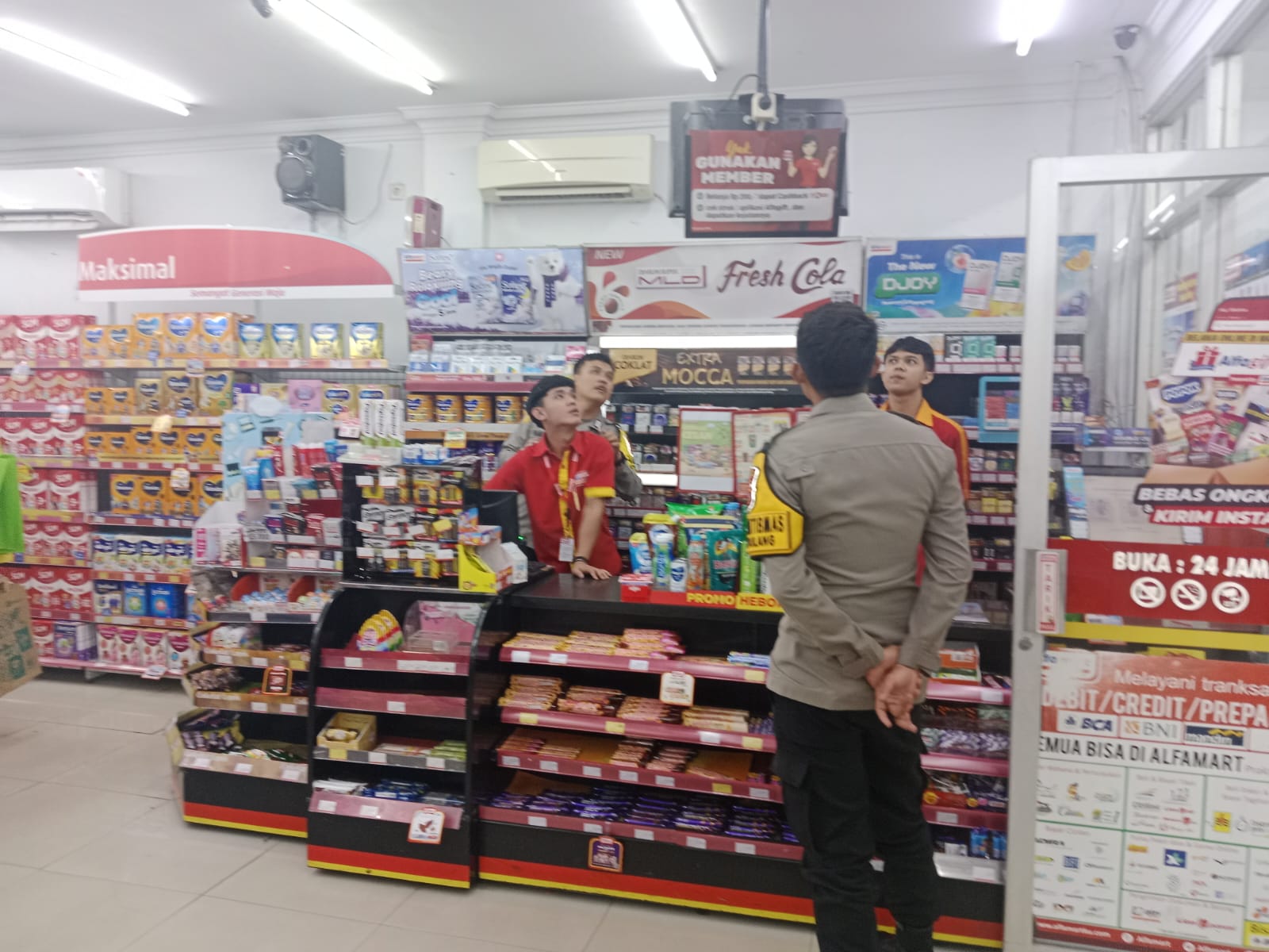 Majalengka – Dalam rangka menciptakan situasi yang aman dan kondusif serta mengantisipasi tindak kriminalitas C3 (Curat, Curas, dan Curanmor), Bhabinkamtibmas Polsek Cikijing Polres Majalengka Polda Jabar, Bripka Harry bersama Brigadir M Fadli, S.H. menyambangi minimarket Alfamart 24 jam yang berada di Desa Sukamukti, Kecamatan Cikijing, Kabupaten Majalengka, Kamis (18/12/2025).