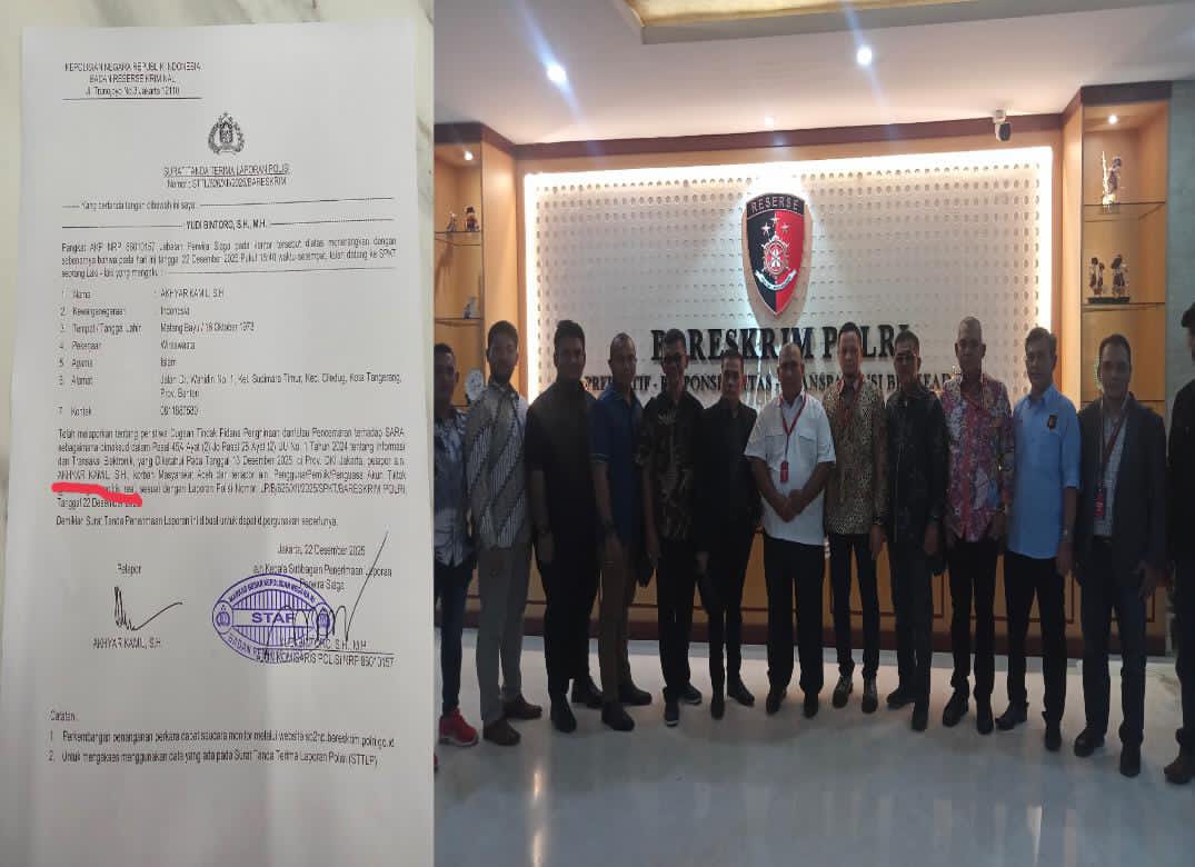 Dr. Emiral Rangga Tranggono,SH., M.H. Selaku Ketua Tim Advokasi Persaudaraan Aceh Seranto, hari ini kami membuat laporan ke Cyber Bareskrim melaporkan dugaan terhadap akun Tik tok Wdagelanpolitik, dengan laporan polisi nomer. L/B/626/XII/2025/SPKT/BARESKRIM POLRI Tanggal 22 Desember 2025.