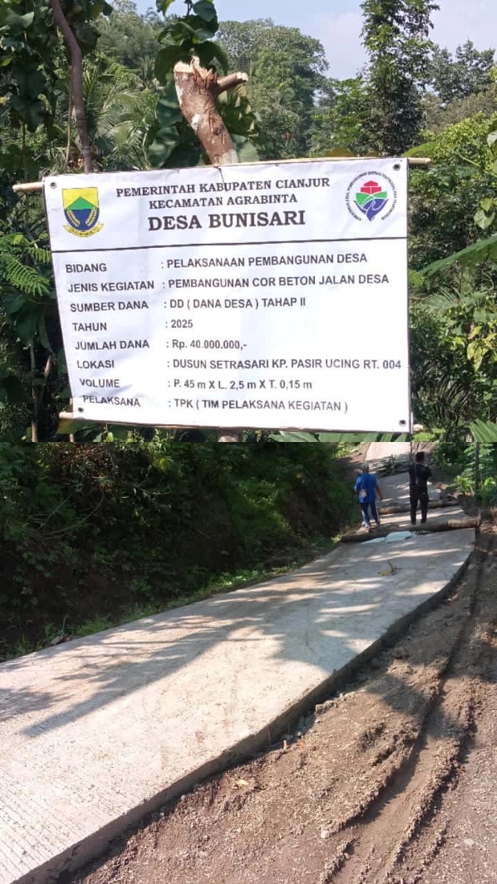Kepala Desa Bunisari, Ruyatman, menyampaikan bahwa pembangunan jalan tersebut merupakan bentuk kepedulian pemerintah desa terhadap kebutuhan masyarakat.
