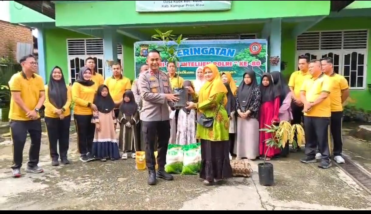 KUOK – Satuan Intelkam Polres Kampar memperingati Hari Ulang Tahun (HUT) Intelijen Polri ke-80 dengan menggelar serangkaian kegiatan sosial dan lingkungan, Sabtu (03/01/2026). Kegiatan ini meliputi pemberian bantuan sosial di Panti Asuhan Putri Aisyah Muhammadiyah Kec. Kuok dan penanaman pohon, serta kegiatan bakti sosial di Masjid Al Azhar Bangkinang.