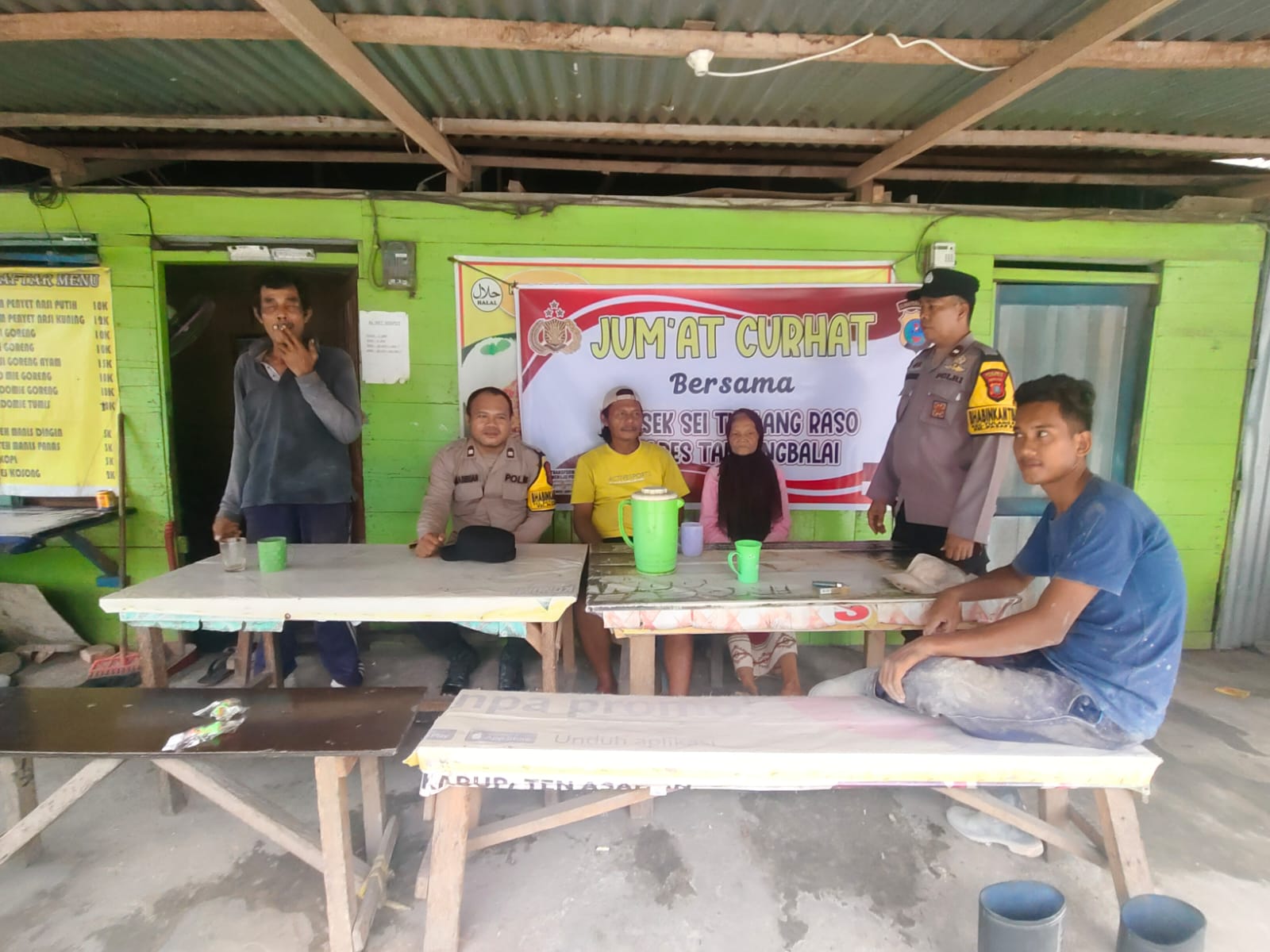 Bertempat di Warung Ayam Penyet Ibu Puji, Jalan Pasar Baru, Kelurahan Pasar Baru, dua personel Polsek Sei Tualang Raso, Aiptu S.R.O. Hasibuan dan Aiptu Safaruddin Samosir, duduk bersama warga untuk mendengarkan langsung keluhan serta aspirasi terkait situasi keamanan dan ketertiban masyarakat (Kamtibmas).