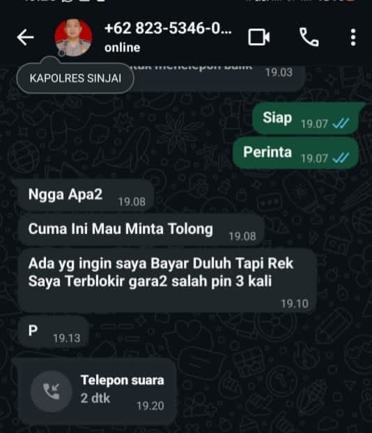 “Kami mengajak seluruh masyarakat agar selalu waspada, tidak panik, dan tidak menuruti permintaan uang atau permintaan dalam bentuk apa pun dari pihak yang mengatasnamakan Kapolres Sinjai yang baru,” lanjutnya.