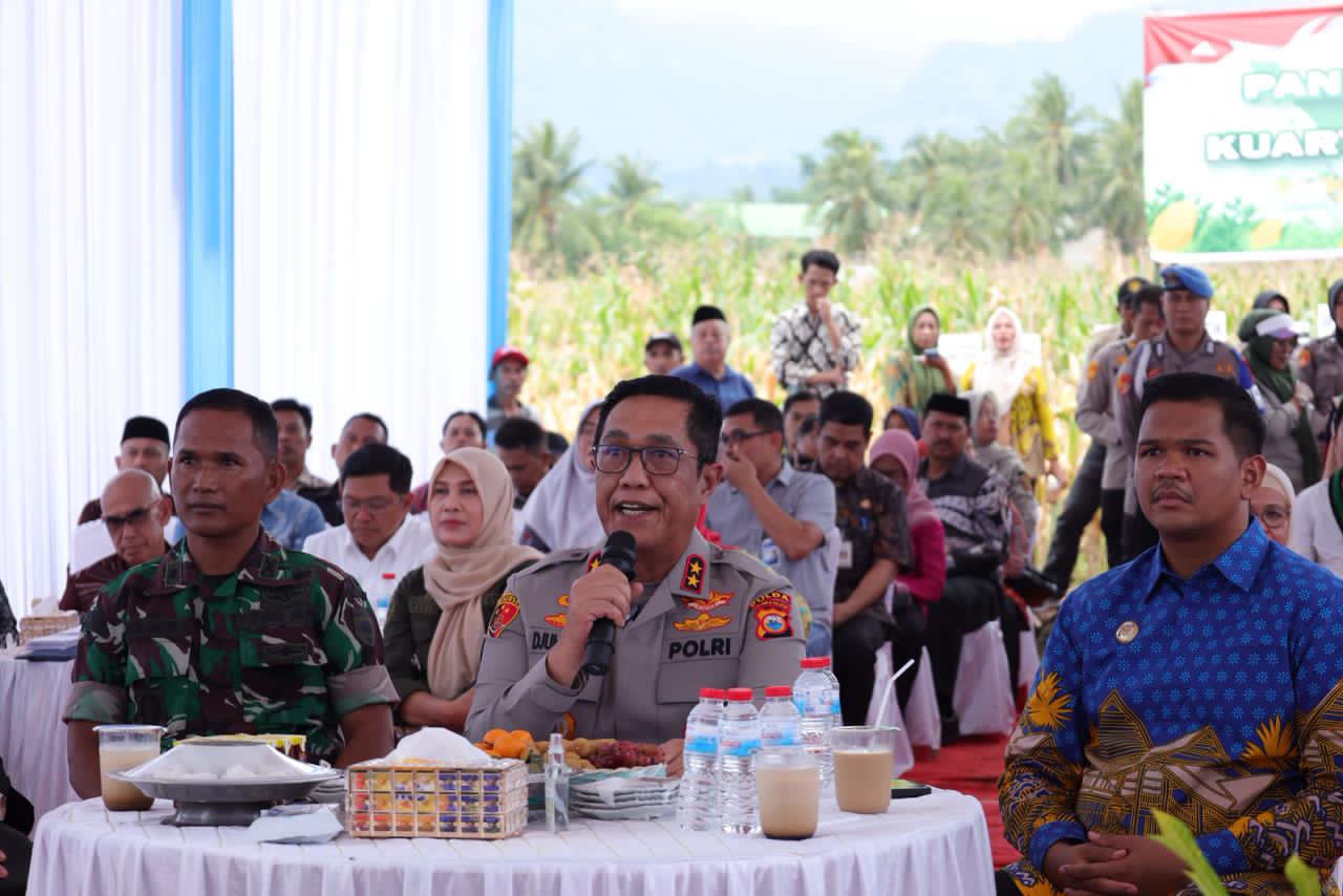Dalam keterangannya, Kapolda Sulsel menyampaikan bahwa sepanjang tahun 2025 potensi lahan jagung di wilayah Polda Sulawesi Selatan mencapai 3.905,2 hektar atau 79,1 persen dari target 5.000 hektar, dengan realisasi luas tanam sebesar 2.863,4 hektar. Berdasarkan data produksi, kontribusi jagung Sulawesi Selatan tercatat sebesar 1.275.535,27 ton, sementara hasil pendampingan Polri mencapai 11.450,5 ton dari luas panen 2.264,6 hektar. Pemenuhan Cadangan Jagung Pemerintah (CJP) pada Bulog Sulsel telah mencapai 17.559 ton.