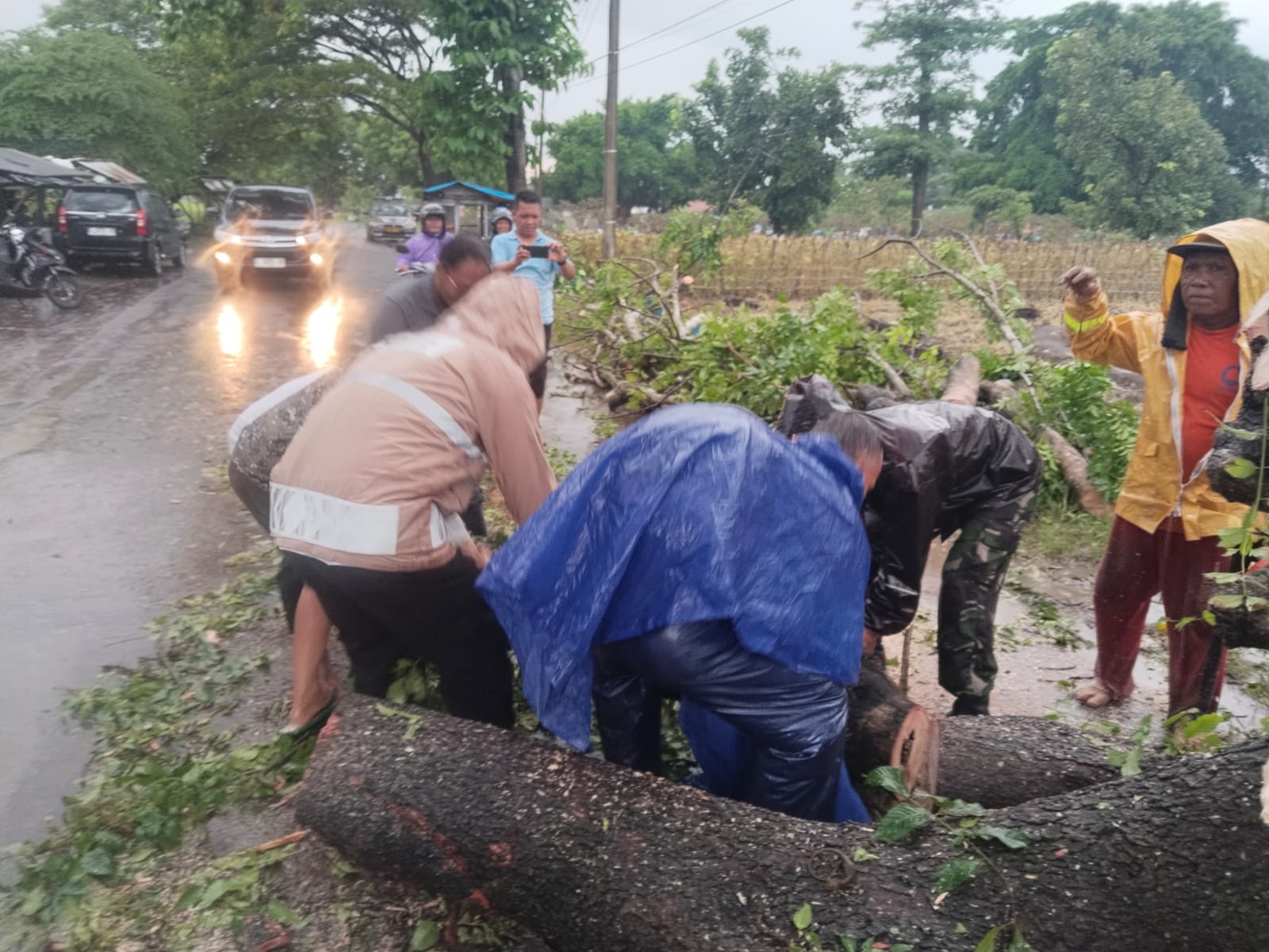 Polsek Sumberjaya Sigap Evakuasi Pohon Tumbang di Jalur Desa Lojikobong
