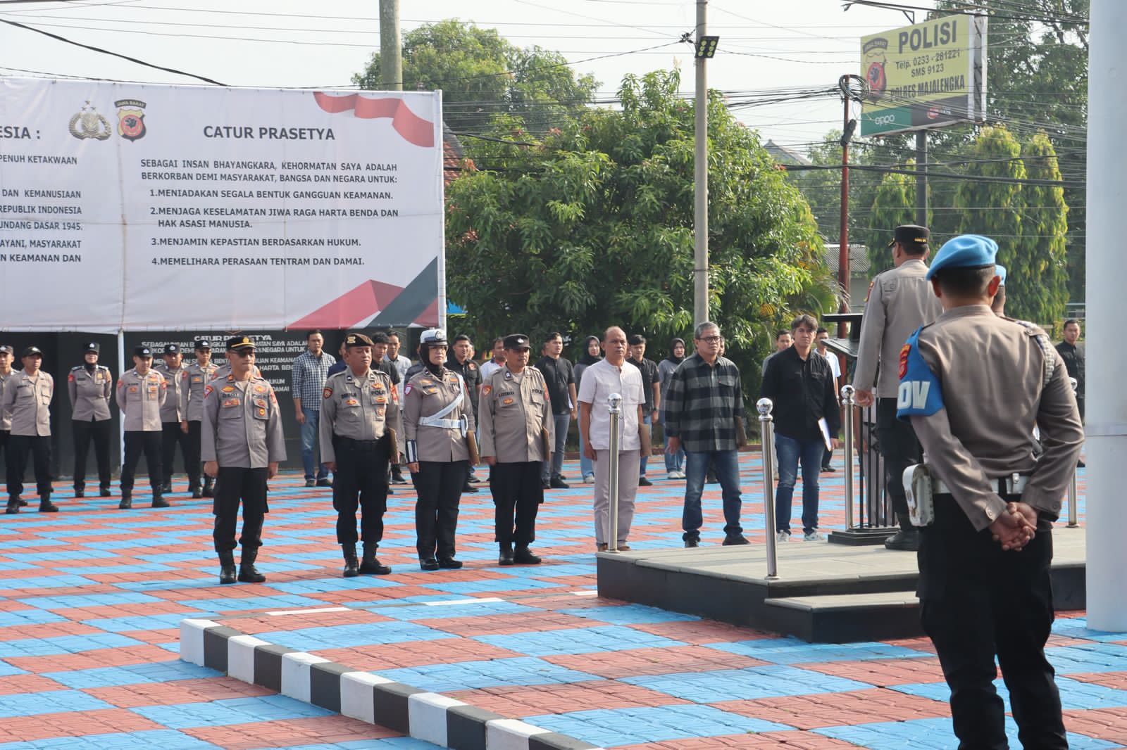 Apel pagi ini turut dihadiri oleh Wakapolres Majalengka Kompol Asep Agustoni, S.E., M.M., yang bersama jajaran pimpinan memantau langsung kehadiran serta kesiapan seluruh personel. Dalam arahannya, Kompol Mangapul Simangunsong menekankan pentingnya disiplin, tanggung jawab, dan profesionalisme seluruh anggota dalam menjalankan tugas sesuai dengan fungsi dan perannya masing-masing. Ia juga mengingatkan agar setiap personel senantiasa menjaga kekompakan, soliditas, serta meningkatkan kewaspadaan dalam menghadapi dinamika situasi kamtibmas di wilayah hukum Polres Majalengka.