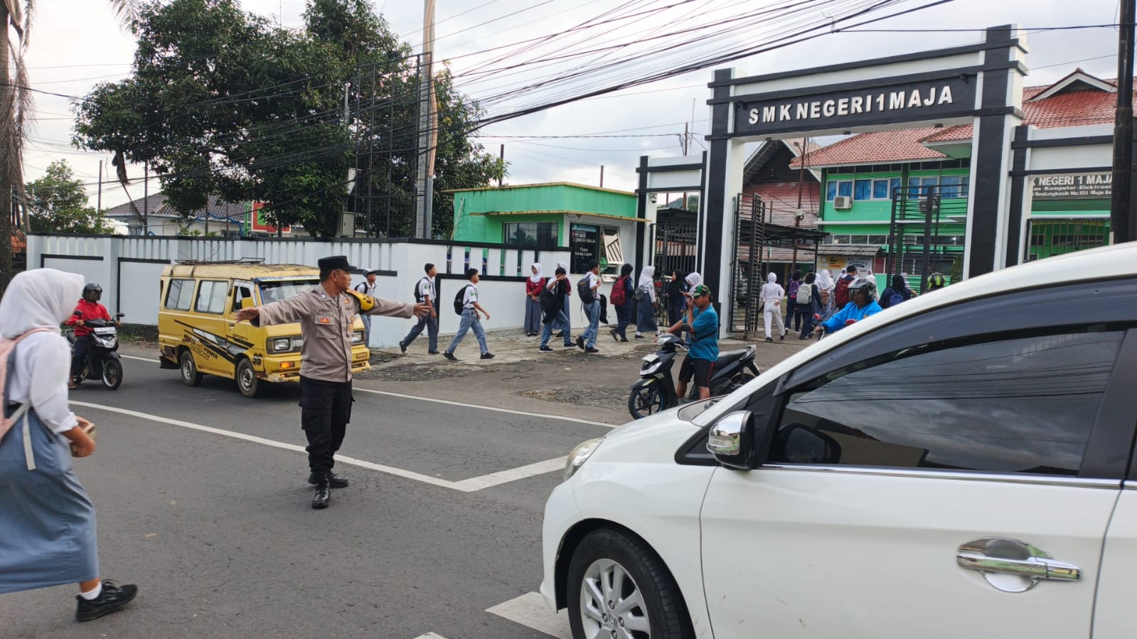 Polsek Maja Tingkatkan Pengamanan Lalu Lintas Lewat Gatur Pagi di Depan SMKN 1 Maja