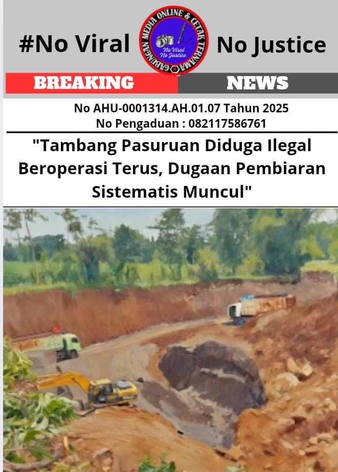 Reformasiaktual.com//Pasuruan (GMOCT) – Aktivitas tambang pasir yang diduga ilegal milik TV Batu Alam Bekas Jaya di Dusun Dukuh Wetan, Desa Sumberejo, Kabupaten Pasuruan, semakin menguat sebagai potret buram penegakan hukum serta sektor pertambangan. Meski telah berulang kali diseret media dan memicu reaksi publik secara nasional, tambang tersebut tetap beroperasi tanpa tindakan tegas, memunculkan dugaan serius adanya pembiaran sistematis hingga pertumbuhan oknum tertentu.