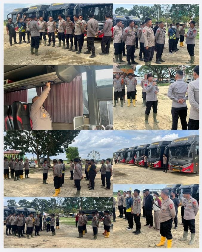 KABUPATEN ACEH TAMIANG – Korps Brigade Mobil (Brimob) Polri melalui Pasukan Brimob I Korbrimob Polri menggelar apel kesiapan kendaraan bus dan truk yang akan digunakan untuk menjemput Anggota Tata Usaha Polri (ANTAP) serta Taruna/Taruni Akademi Kepolisian (Akpol) dari Pelabuhan Belawan Medan ke Batalyon Infanteri 111 Kabupaten Aceh Tamiang pada tanggal 22 Januari 2026. Apel tersebut dilaksanakan pada hari Selasa (20/1/2026) pukul 14.00 WIB hingga selesai di Lapangan Sport Center Kabupaten Aceh Tamiang, dengan personel berpakaian PDL II Coklat Tactical.
