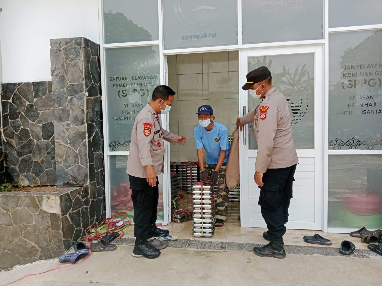 Panit Samapta II IPDA D. Yusuf bersama Ps. Panit Samapta II Aiptu Eman Subagja melakukan monitoring dan pemantauan MBG di SPPG Yayasan Ihsan Haji Santri Nusantara Desa Sindang, Kecamatan Cikijing, Kabupaten Majalengka, Selasa (20/01/2026).