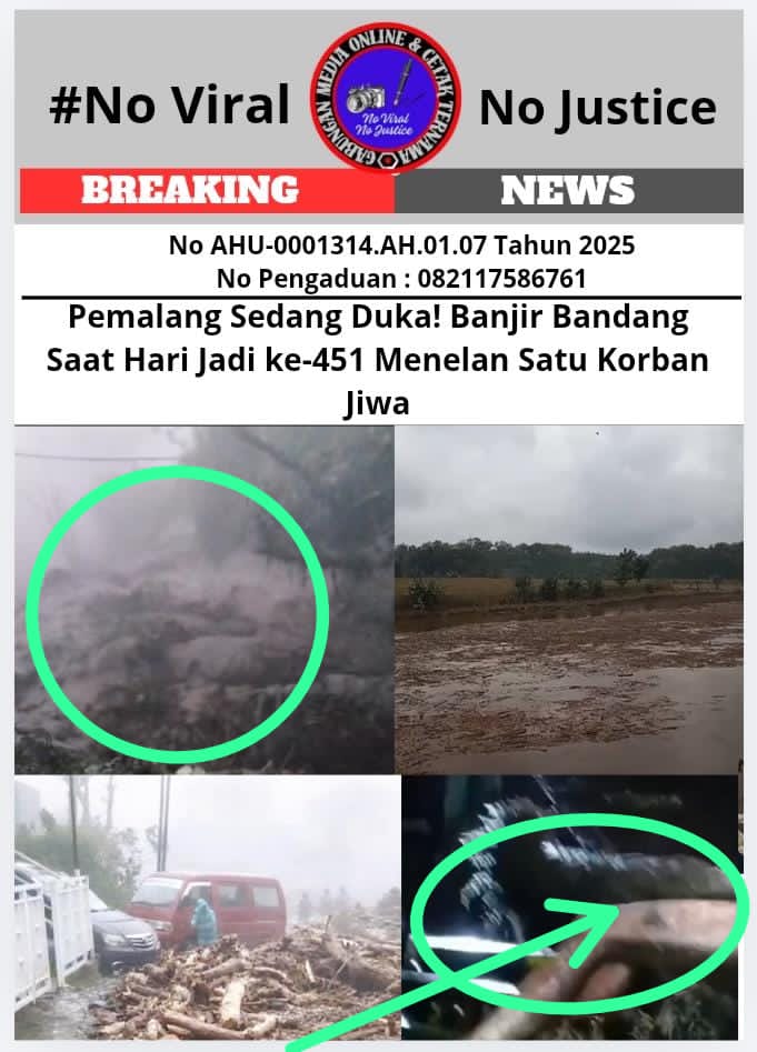 Reformasiaktual.com//Pemalang (GMOCT) – Peringatan Hari Jadi Kabupaten Pemalang ke-451 yang seharusnya penuh makna dan keceriaan berubah menjadi suasana duka mendalam. Banjir bandang yang disertai angin kencang menerjang wilayah Pemalang Selatan, khususnya Kecamatan Pulosari, pada Sabtu (24/1/2026). Peristiwa memilukan ini menelan satu korban jiwa dan membuat puluhan rumah warga terdampak parah.