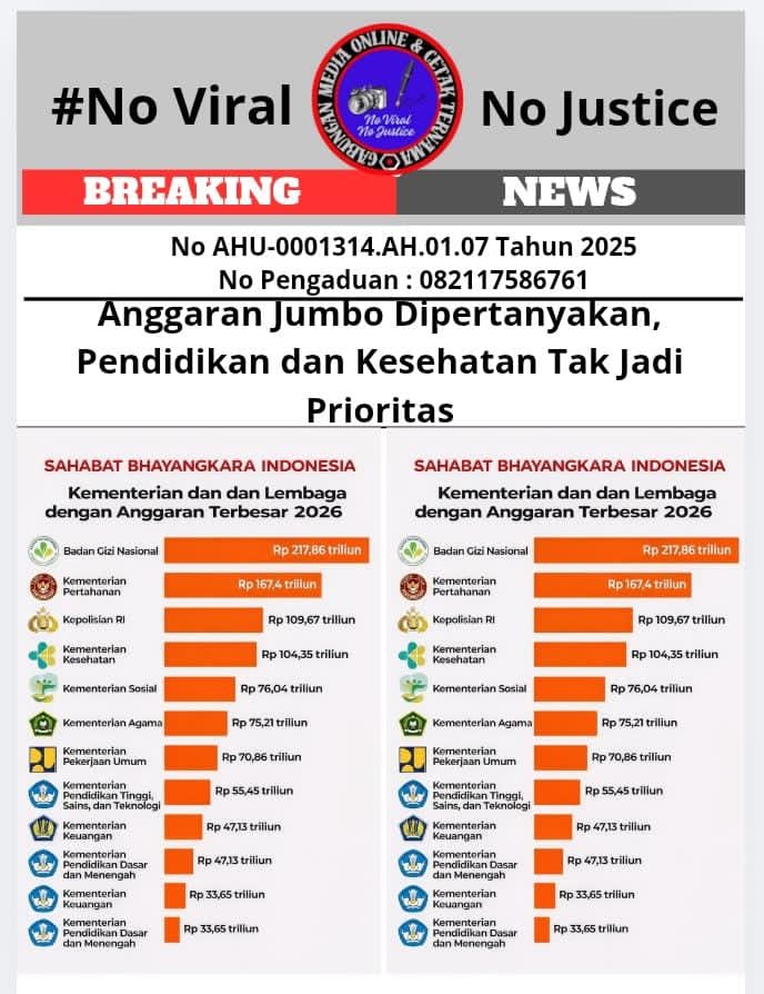 Arah kebijakan penganggaran negara kembali menjadi sorotan. Informasi ini diperoleh oleh Gabungan Media Online Cetak Ternama (GMOCT) dari media online Kabarsbi.com yang tergabung dalam organisasi tersebut. Sosial control sekaligus Pimpinan Redaksi Sahabat Bhayangkara Indonesia (Kabarsbi.com) dan Ketua Umum GMOCT, Agung Sulistio, menilai kebijakan anggaran pemerintah belum sepenuhnya berpihak pada sektor pendidikan dan kesehatan sebagai kebutuhan dasar masyarakat.