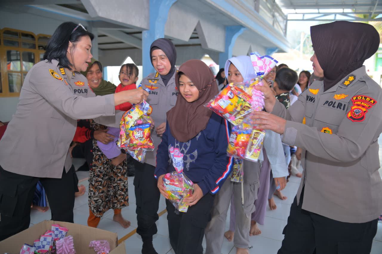 Selain menyalurkan bantuan, para Polwan juga memberikan dukungan moril serta berinteraksi langsung dengan para pengungsi guna memberikan semangat dan rasa aman di tengah situasi pasca bencana.