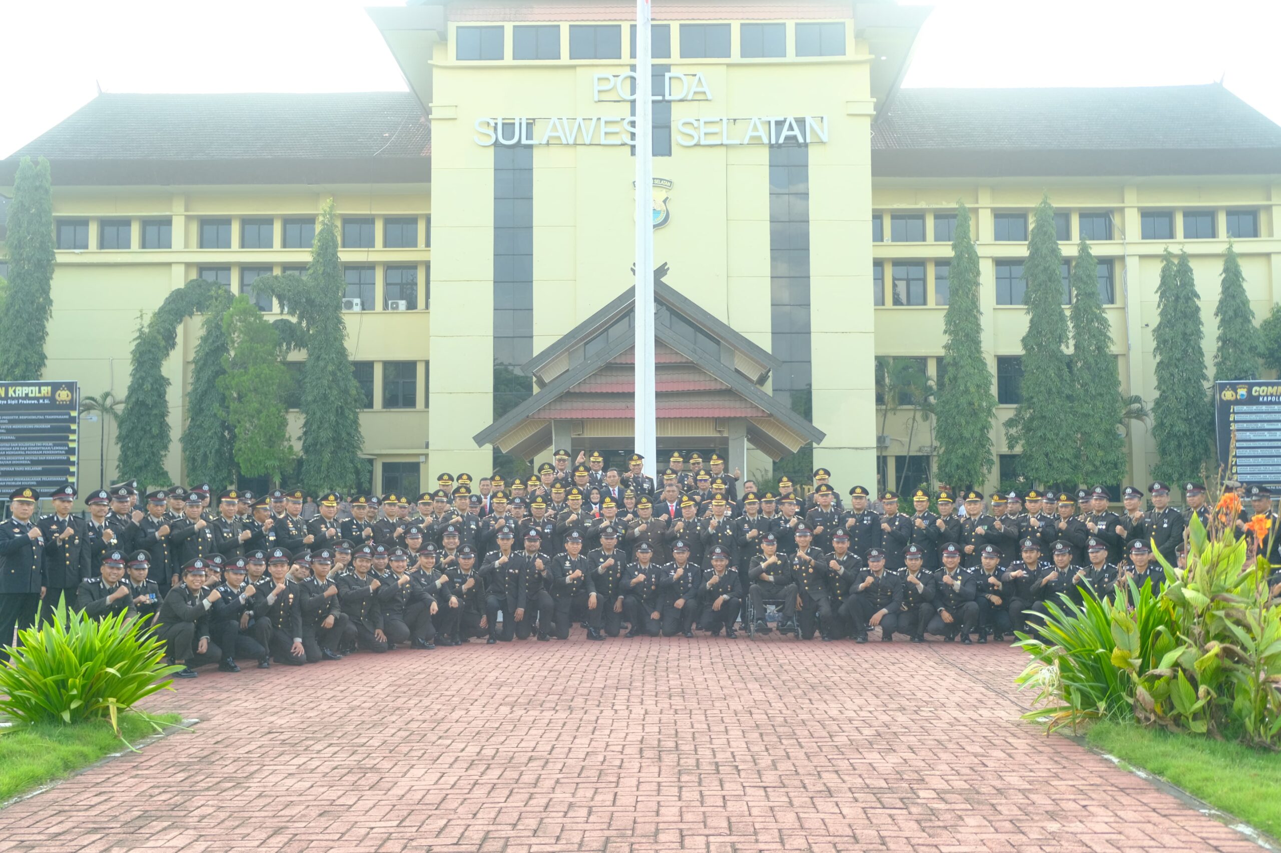 Upacara tersebut turut dihadiri Irwasda Polda Sulsel Kombes Pol. Ai Afriandi, S.H., S.I.K., M.M., para Pejabat Utama Polda Sulsel, serta ratusan personel penerima tanda kehormatan.