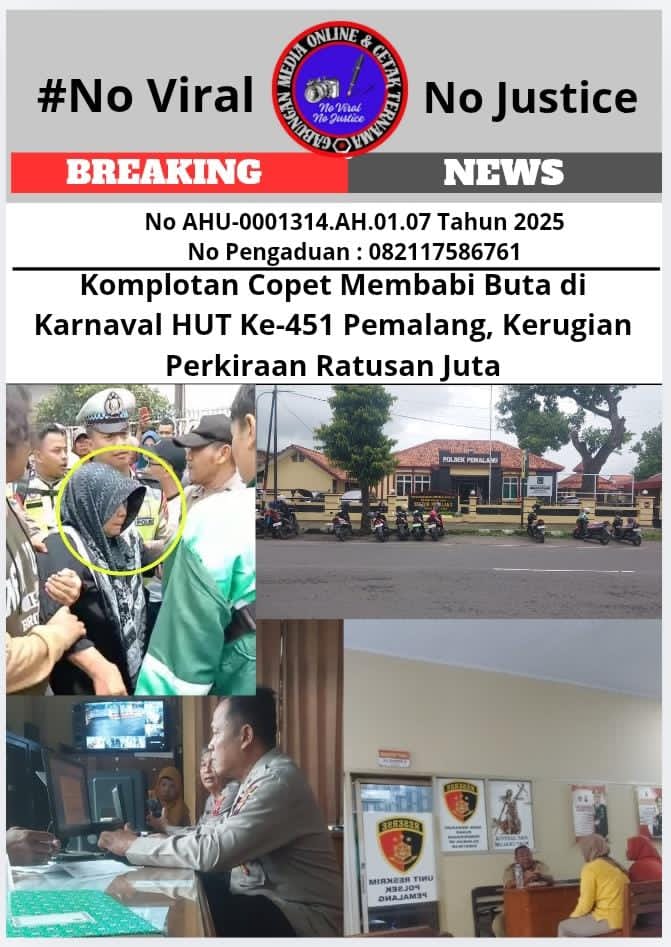 PEMALANG (GMOCT) – Gabungan Media Online dan Cetak Ternama (GMOCT) mendapatkan informasi dari salah satu anggotanya, media online Detikperistiwa, bahwa puluhan emak-emak mengalami kecopetan saat mengikuti acara Karnaval Kirab Gunungan Hasil Bumi dalam rangka memperingati Hari Jadi ke-451 Kabupaten Pemalang Tahun 2026, Minggu (25/1/2026).