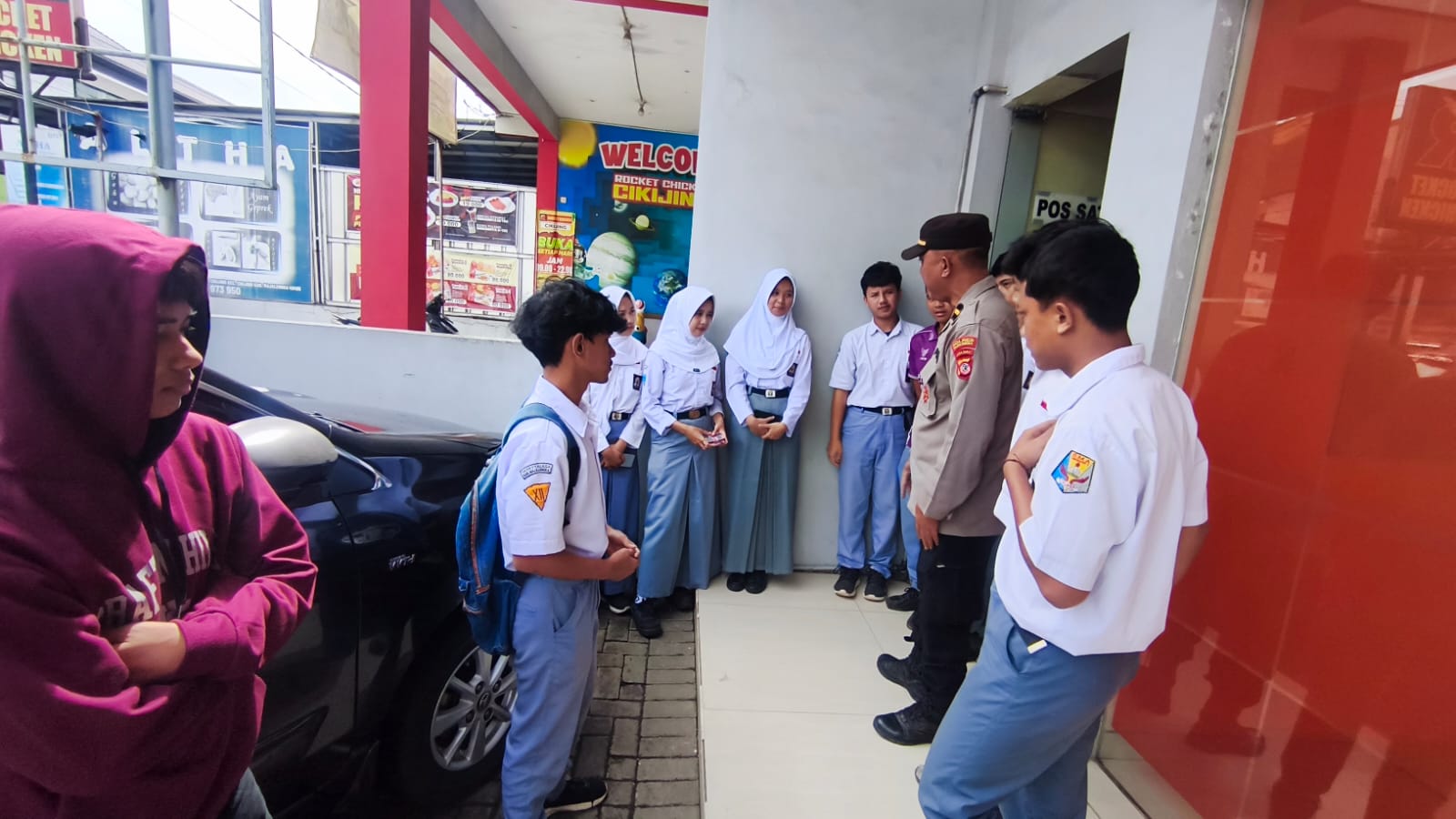 Majalengka – Panit Samapta II Polsek Cikijing Polres Majalengka Polda Jabar IPDA D. Yusuf, S.Sos., M.Si. bersama Bhabinkamtibmas Brigadir Pijar Hamdani, S.H. menyambangi anak-anak sekolah di Bank BNI KLN Cikijing dan memberikan imbauan tentang pentingnya menjauhi kenakalan remaja serta aksi bullying, Senin (26/01/2026).