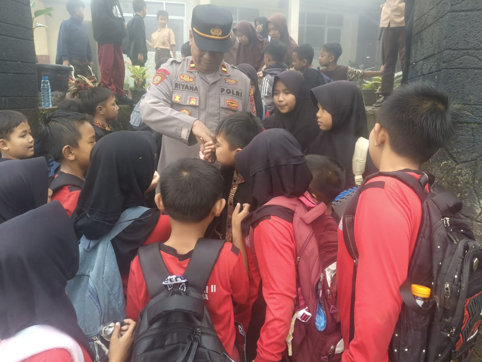 Dalam patrolinya Kapolsek Malausma IPDA Riyana menjumpai anak-anak SD Negeri 2 Werasari yang sedang berjalan bersama menyusuri jalan pulang selepas sekolah untuk kembali kerumahnya masing-masing.