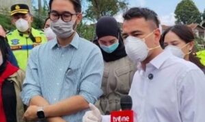 Raffi Ahmad dan istri Nagita Slavina bersama rombongan, langsung meninjau area terdampak longsor Keduanya melihat langsung kerusakan lingkungan dan permukiman dengan berkeliling menggunakan sepeda motor.