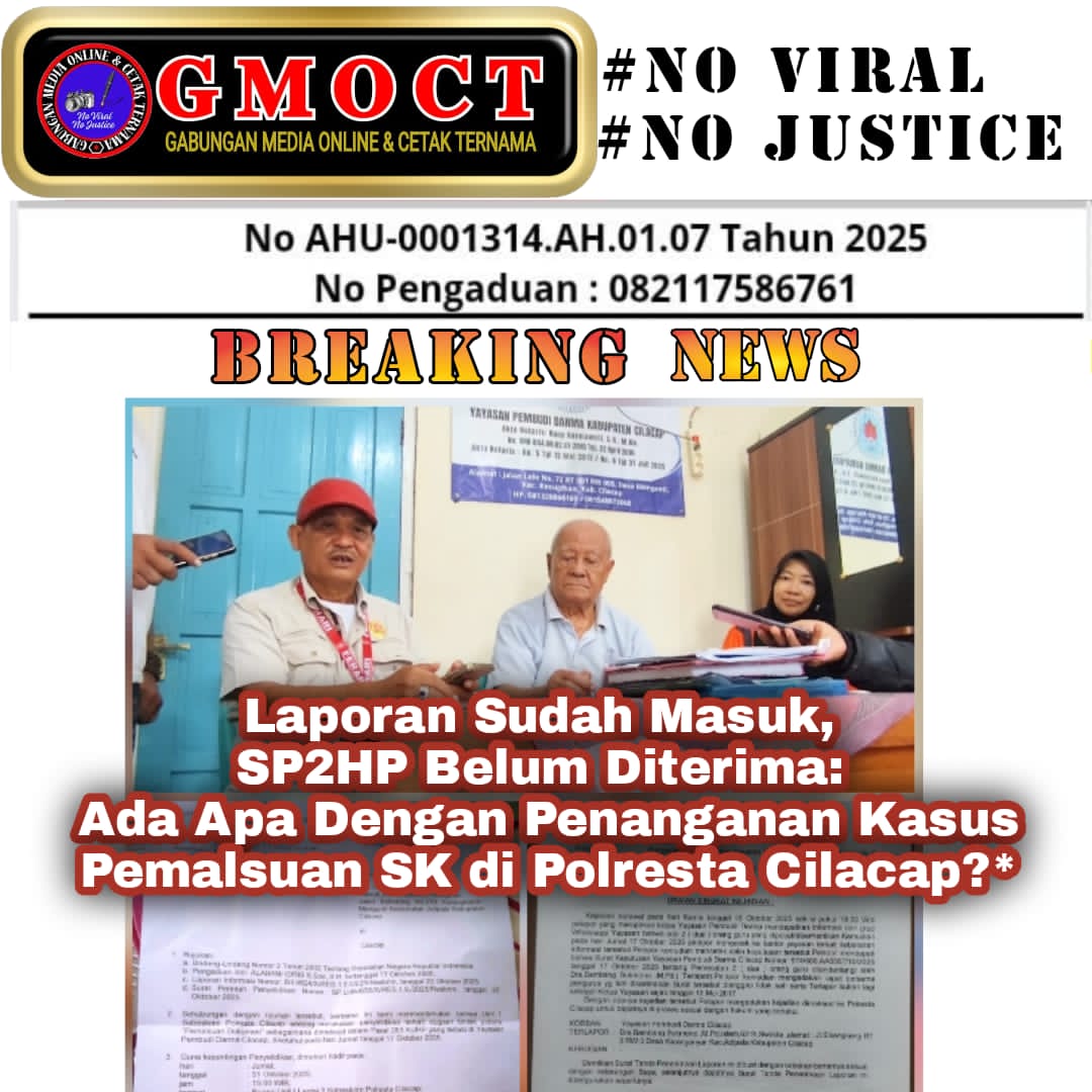 Cilacap, _ Penanganan dugaan pemalsuan Surat Keputusan (SK) pemberhentian dua guru di Yayasan Pembudi Darma Cilacap menjadi sorotan. Ketua Yayasan, Albani Idris, S.Sos., S.H., mempertanyakan perkembangan laporan yang telah ia ajukan ke Polresta Cilacap, menyusul belum diterimanya Surat Pemberitahuan Perkembangan Hasil Penyidikan (SP2HP) maupun salinan Laporan Polisi (LP).