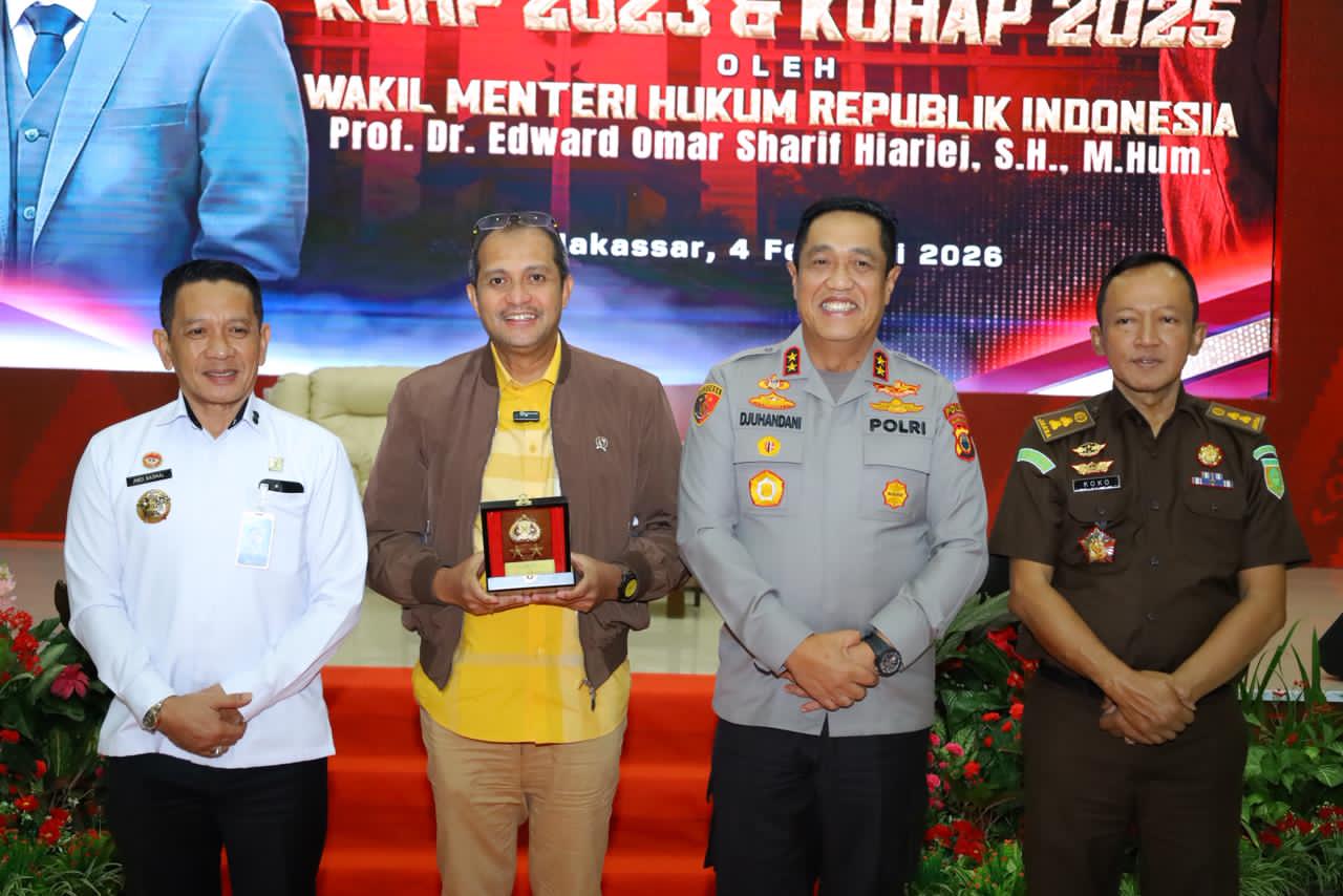 Polda Sulawesi Selatan menggelar kegiatan sosialisasi Undang-Undang Nomor 1 Tahun 2023 tentang Kitab Undang-Undang Hukum Pidana (KUHP) dan Undang-Undang Nomor 20 Tahun 2025 tentang Kitab Undang-Undang Hukum Acara Pidana (KUHAP), bertempat di Aula Mappaoddang Mapolda Sulsel, Rabu (04/02/2026).