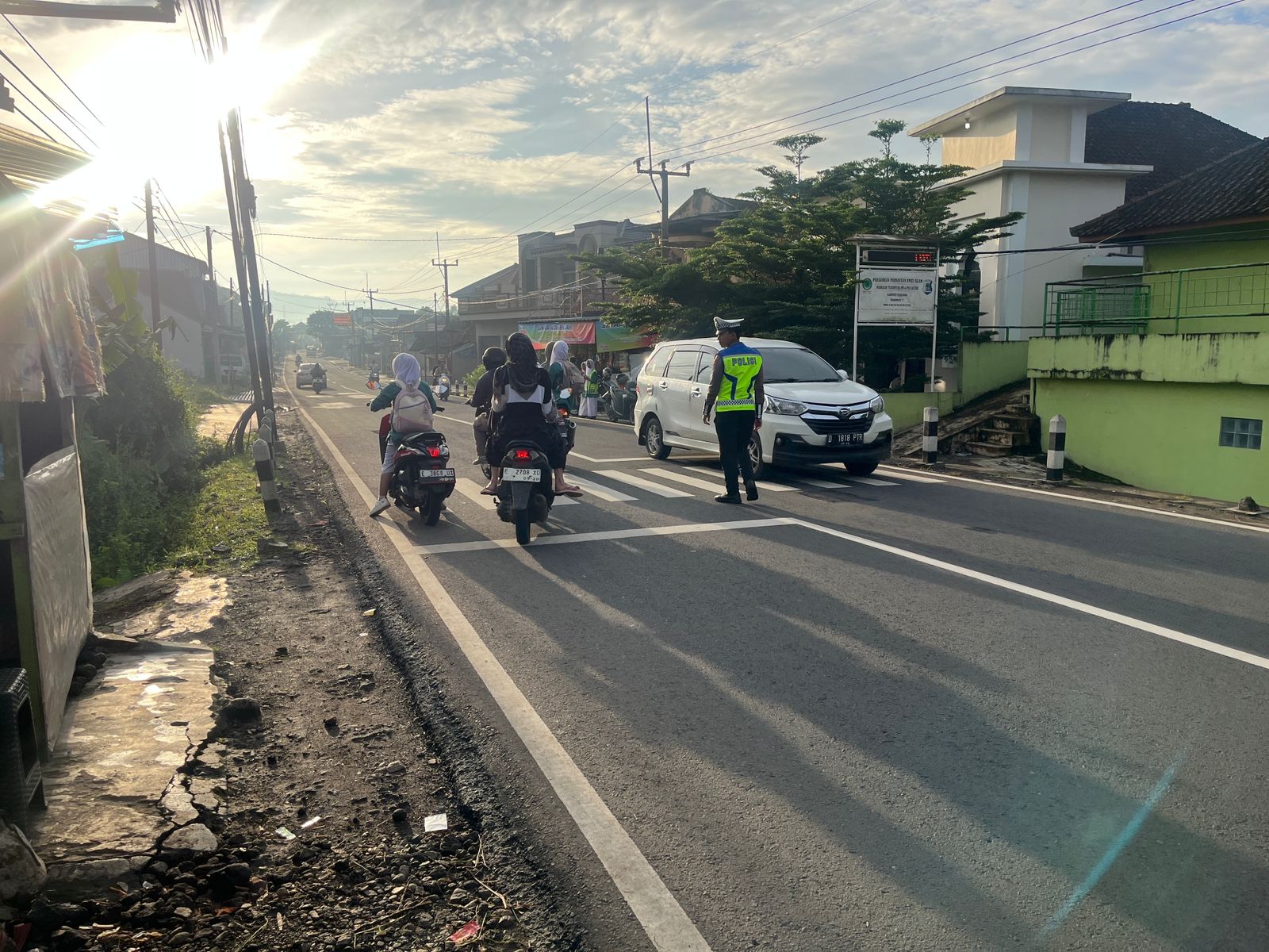 Majalengka – Polsek Cikijing Polres Majalengka Polda Jabar terus berupaya memastikan kelancaran arus lalu lintas serta meningkatkan keamanan dan keselamatan pengguna jalan. Ps. Panit Lantas Aiptu Ade Deni H bersama Bripda Thoriq melaksanakan Protap Pelayanan Gatur Lalin di Jalan Raya Cikijing-Talaga tepatnya di MTs PUI Kasturi, Kecamatan Cikijing, Jum’at (06/02/2026).