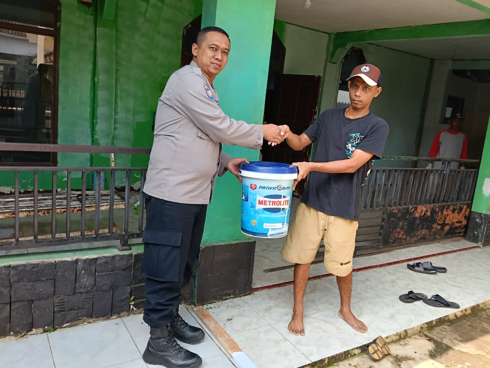 Kanit Binmas dan Bhabinkamtibmas Polsek Malausma Polres Majalengka menunjukkan kepedulian terhadap fasilitas ibadah dengan memberikan bantuan material berupa Cat untuk Pengecetan dinding yang sudah kusam.