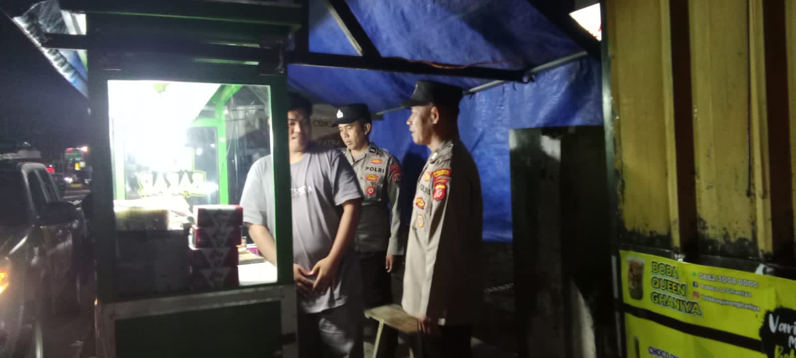 Patroli Malam, Personil Polsek Cikijing Sambangi Pedagang Roti Bakar
