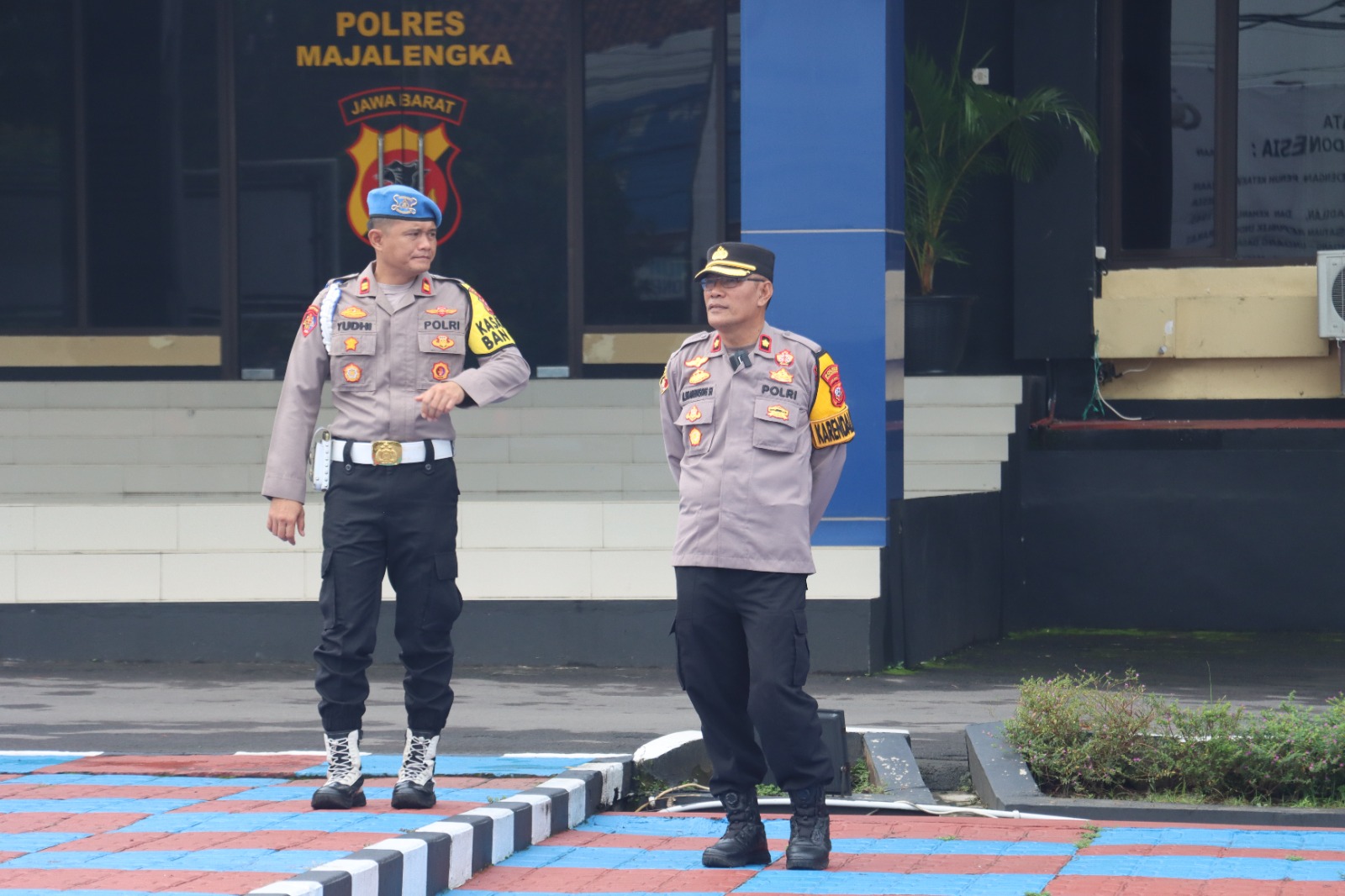 Majalengka – Wakapolres Majalengka Kompol Asep Agustoni, S.E., M.M., memimpin apel pagi di halaman Mapolres Majalengka dengan memberikan sejumlah penekanan kepada seluruh personel, khususnya terkait pentingnya menjaga kesehatan dalam menghadapi peningkatan tugas ke depan.(12/2/26)