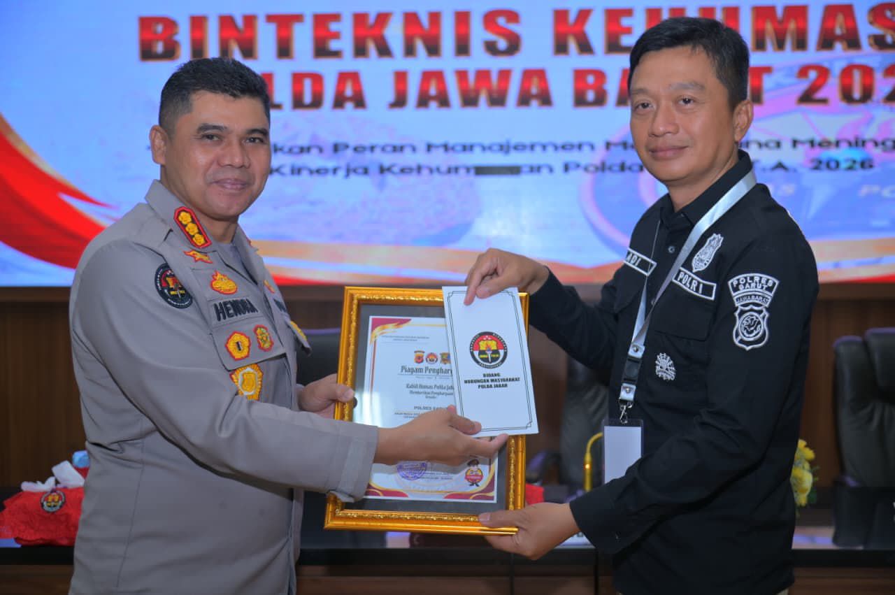 Penghargaan tersebut diberikan langsung oleh Kabid Humas Polda Jawa Barat, Kombes Pol. Hendra Rochmawan, S.I.K., M.H., saat penyelenggaraan Binteknis Kehumasan Polda Jabar pada Kamis (13/2/2026).