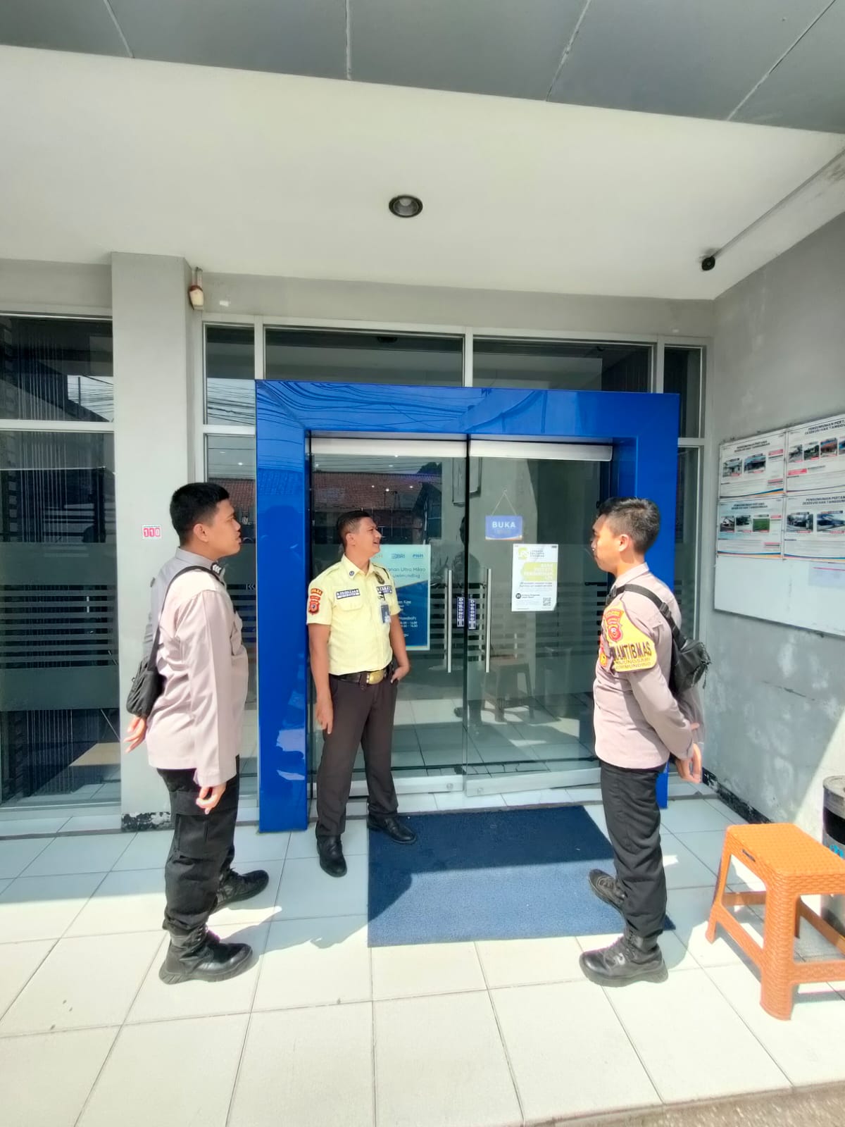 Perkuat Keamanan Perbankan, Personel Polsek Leuwimunding Sambangi Satpam BRI dan Sosialisasikan Call Center 110
