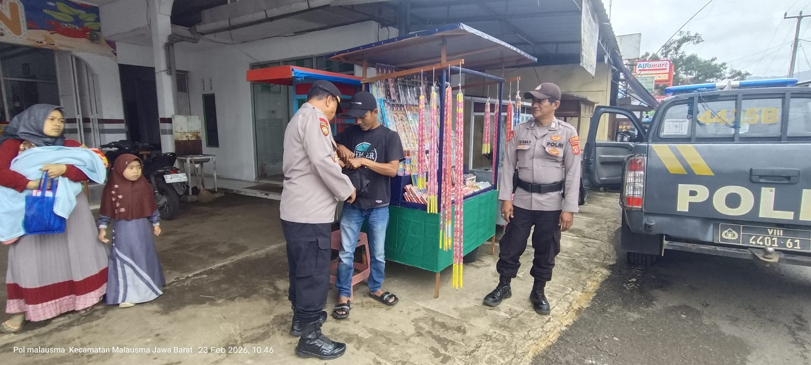 Majalengka, Jajaran personel Polsek Malausma Polres Majalengka dipimpin langsung Kapolsek Malausma melaksanakan operasi Cipta Kondisi dengan merazia petasan di wilayah Kecamatan Malausma, Senin (23/2/2026) siang.